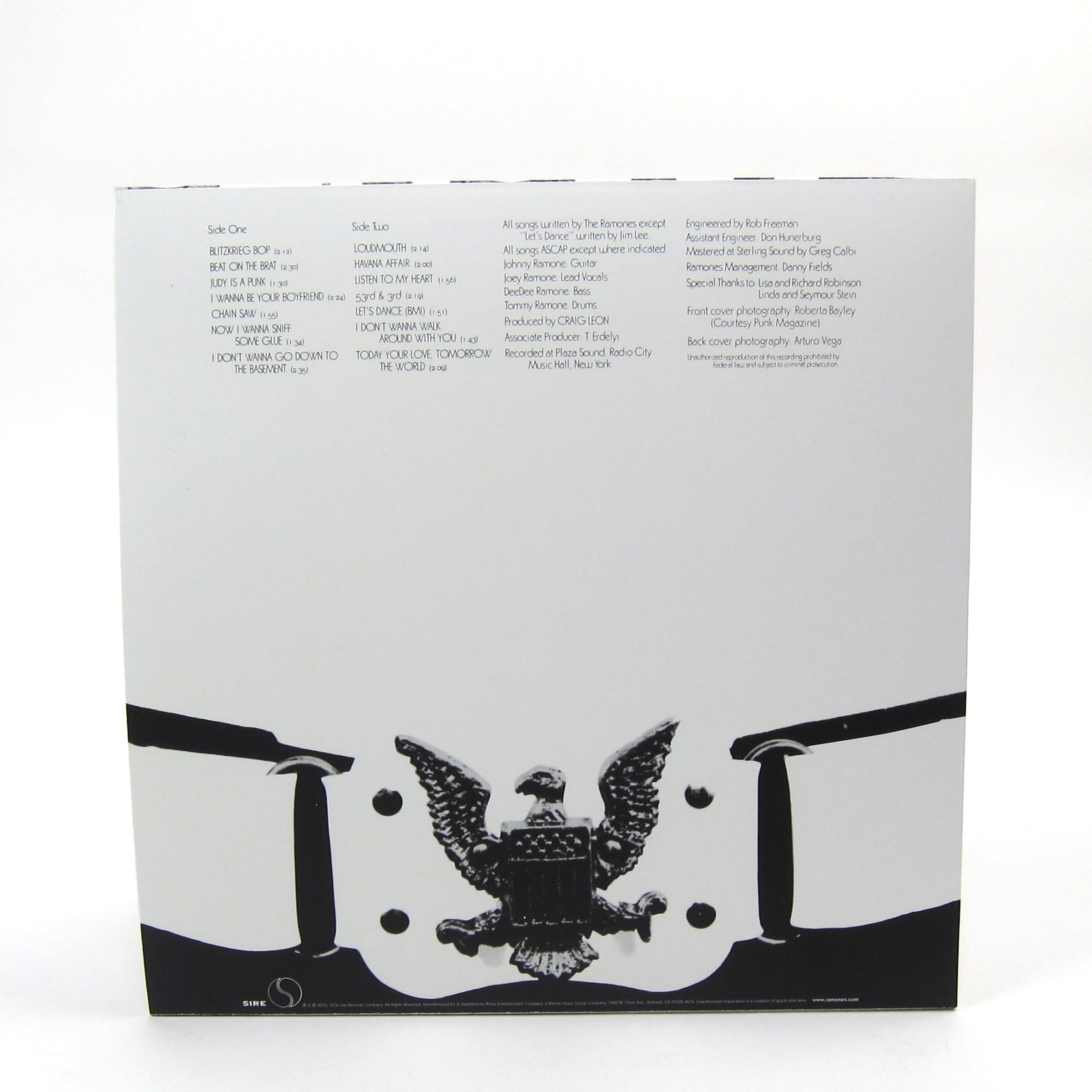 Debut studio album from Forest Hills' Ramones. Their eponymous debut was originally released in 1976 and features some of the band's most recognized songs. It was a stark contrast to the bloated prog rock that plagued the 70s. The album's short bursts of concentrated rock 'n' roll won over a legion of fans and saved punk from getting swallowed up by the art world. Who could resist an album filled with songs like "Beat On The Brat," "I Wanna Be Your Boyfriend," "Now I Wanna Sniff Some Glue," and Blitzkrieg Bop?" Fourteen tracks in all. Released by Sire on 180 gram vinyl housed in a replica sleeve with printed inner sleeve.