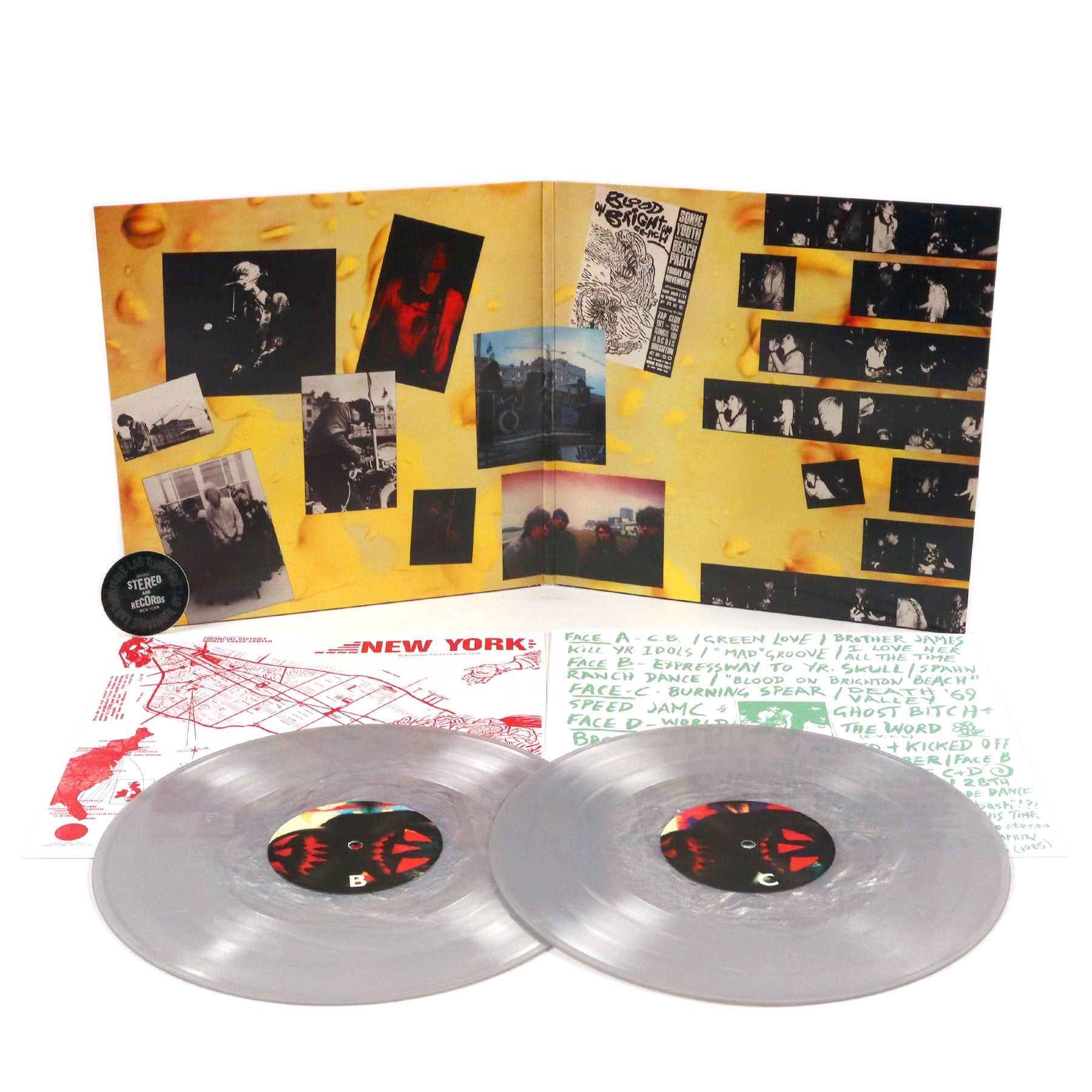 "Culled from three 1985 gigs in the UK during a transitional and transcendent time in the band’s story, Sonic Youth’s The Walls Have Ears appeared / disappeared as a 2LP set in 1986, not just a live album but an artful tapestry full of live experimentation with songs, between-song tape segues, darkness, humor and audio verité. It’s now issued for the first time officially under the band’s auspices. The ’85 shows were the second time the band appeared on UK soil, Brits now getting juiced to the mythos of the emerging guitar-slinging American independent underground; an art / punk band from NYC sporting casual attitudes and tees sporting Bruce Springsteen, Madonna, and Prince made some good press copy on top of their bludgeoning stage appearance. Paul Smith of the newly-founded Blast First label acted as an overseas diplomatic envoy for Sonic Youth through their SST years as well as issuing their classic 1988 Daydream Nation outside the USA. However the Smith-produced ‘bootleg’ of their ’85 UK gigs surfaced much to everyone’s surprise, just before EVOL was to be released. It turned out to be a marker of the group’s dissatisfaction that ultimately led to the release’s deletion, and the band and Smith parting ways after Daydream. In this 2LP set brimming with primitive classics like ‘The Burning Spear,’ ‘Death Valley 69,’ and ‘I’m Insane’ (uncredited on sleeve), segues and live guitar changes ooze together threaded by Madonna tapes and vocal loops off the board (somewhat a necessity for distraction until the band had a full fledged stage crew to prepare guitars). The first two sides of Walls are massive, cavernous, with newly-drafted drummer Steve Shelley. SY tear it up especially on one trash-fi excerpt of ‘Blood On Brighton Beach’ (actually ‘Making The Nature Scene’) from a legendary outdoor gig November 8th where [Thurston] Moore, [Kim] Gordon and [Lee] Ranaldo’s guitars treble-blast dissonant shockwaves over the black-stoned beach of Quadrophenia fame. The record’s second slab spotlights an April 1985 at London’s Hammersmith Palais and was one of the final appearances live of Bob Bert on drums, again featuring some molten takes on ‘Brother James,’ ‘Flower’ (listed as ‘The Word (E.V.O.L.)’), and others. This document remains an essential representation of some lean and mean years of the quartet’s throttling march out into the world." - Goofin Records
