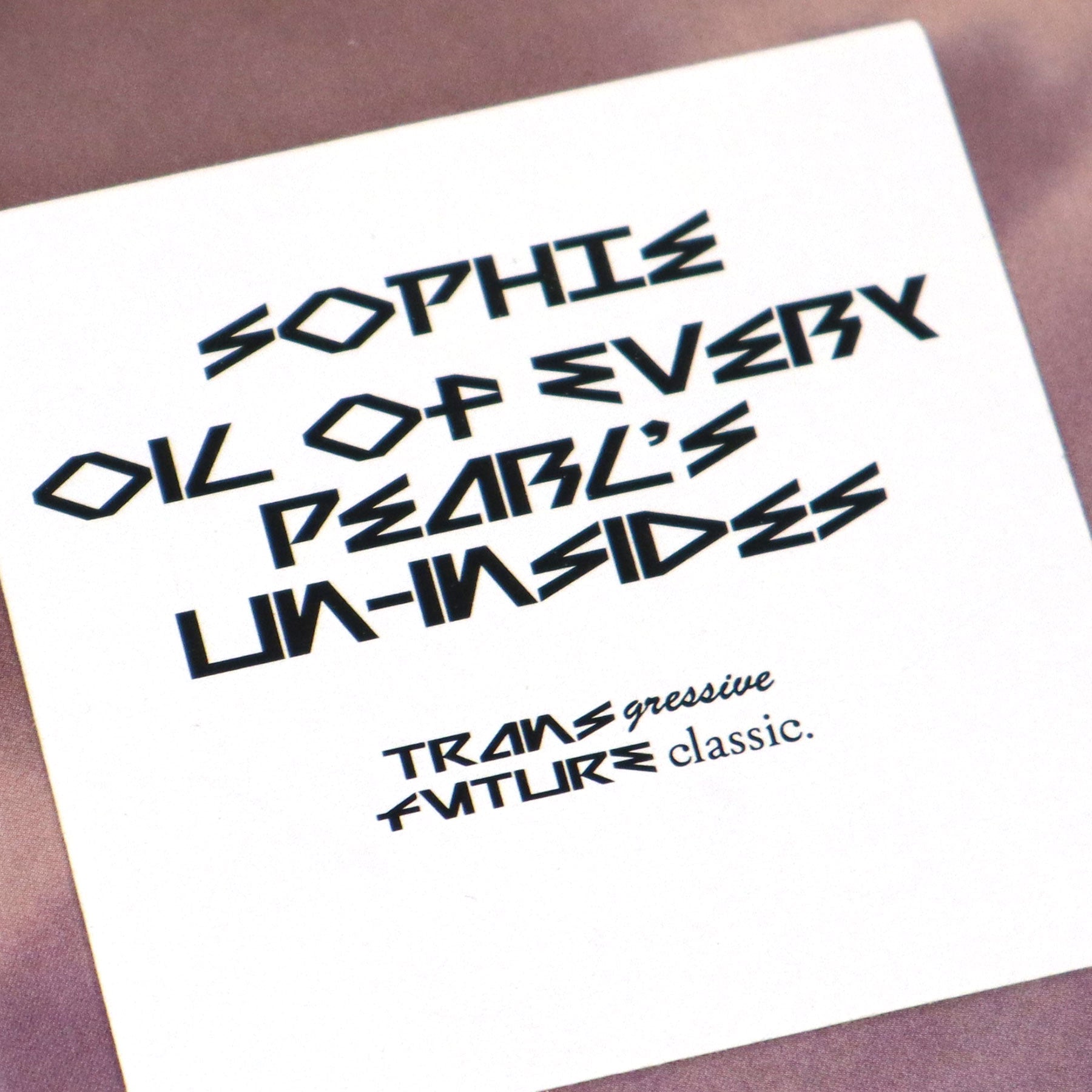 Sophie’s first official full-length record is a victory lap touching on all the styles she’s ushered in and subsequently watched folded into the zeitgeist, from hyperpop to *deconstructed club music* (insert meme). The album’s been out digitally for 6 months already, and thankfully, Sophie & the PC Music crew’s petty aversion to physical formats is cast aside to mark the occasion of this huge record with a deluxe vinyl edition. Opener “It’s Okay To Cry” showcases Sophie’s unwavering commitment to pop perfection before moving into more opaque territory with the junkyard dubstep of “Ponyboy” and “Faceshopping.” Her influences are on full display, albeit a bit warped and dissolved like they’re appearing in a perverse dream; “Infatuation” resembles Burial’s timestretched reveries, and “Is It Cold In The Water” sounds like Kate Bush riding the Mentasm riddim. The disorienting drone of “Pretending” feels like you’re on promethazine in one of the flying car scenes from Blade Runner, and this recurring dystopic hypercolor is the thread that runs through the duration of Oil Of Every Pearl’s Un-Insides, like the soundtrack for a film adaptation of one of PKD’s craziest joints. For the epic climax, Sophie conjures Lemonade-era futurepop bliss on the kaleidoscopic “Immaterial,” which objectively goes hard AF, even for someone who's typically skeptical of this type of stuff. The sleeve vaguely credits appearances by Noonie Bao, Cecile Believe, Banoffee and Industry Plant, but as you’d expect from an artist as elusive as Sophie, it’s impossible to tell at any given time if it's Sophie singing, or one of the aforementioned guests, or if they’re even real people at all. Limited edition red colored vinyl housed in gatefold jacket with printed inner sleeve, and foldout poster.