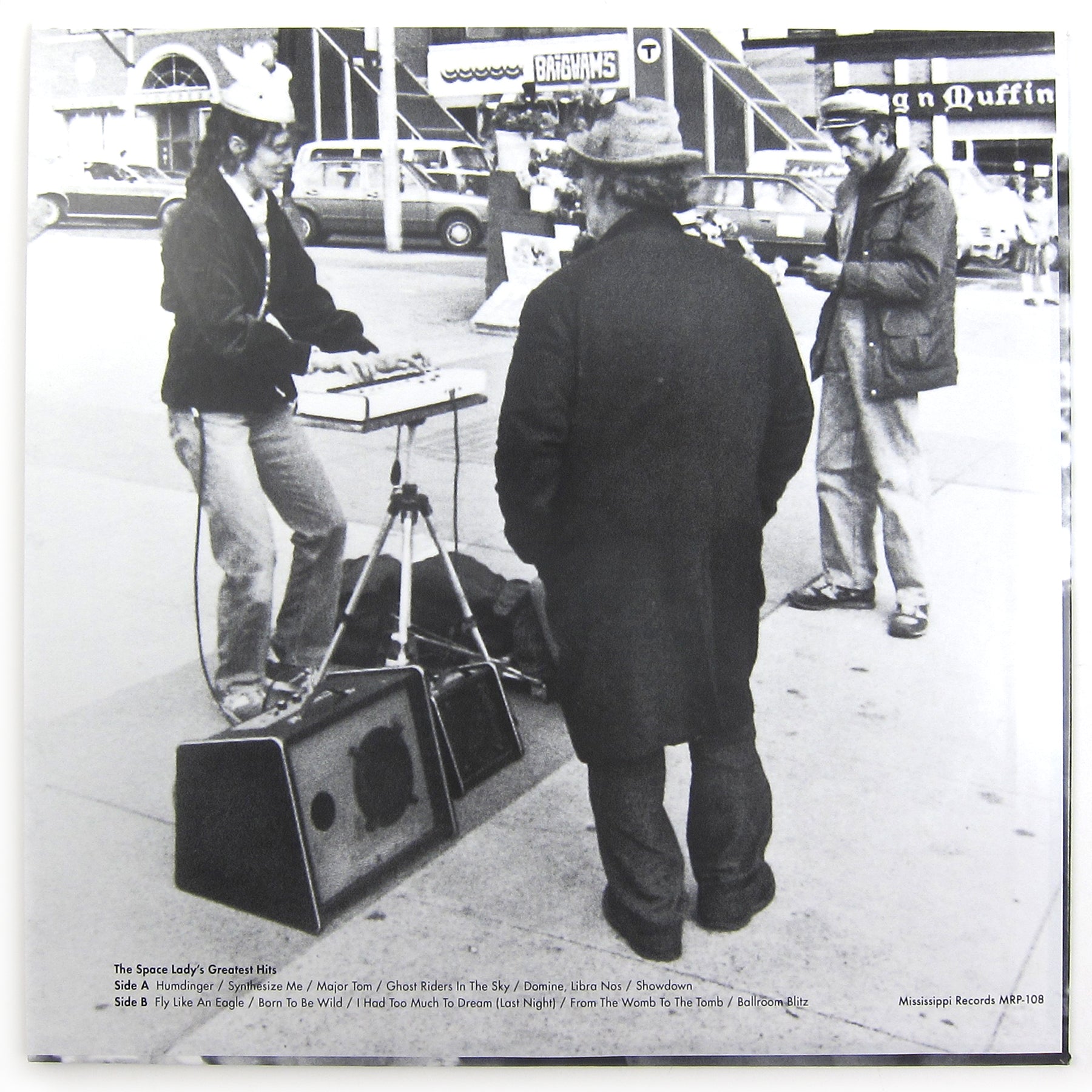 Finally back in print! Susan Schneider aka The Space Lady’s got a long story… born in Colorado, began busking, singing, playing accordion in Boston and later San Francisco through the 70s and 80s, wearing a silver plastic helmet with white wings and a flashing light on top. Her accordion was stolen so she upgraded to a Casio MT-40 keyboard (the very same model used by King Jammy in the production of “Sleng Teng,” which revolutionized reggae music and ushered in the digital dancehall age). She eventually retired from music to become a nurse and began selling homemade CD-Rs of her various recordings here and there. Word of The Space Lady spread when various books and compilations surveying ‘outsider music’ mentioned her in hushed, reverent tones, culminating in this first-ever remastered vinyl collection of her music, originally pressed in 2013. With a sparse kit of just her deeply human voice and the MT-40, Schneider lends newfound depth and soul to well-trodden tunes you’ve heard hundreds of times before, check out her renditions of Peter Schilling’s “Major Tom,” Steve Miller’s “Fly Like An Eagle” and Sweet’s “Ballroom Blitz.” Equally (if not more) charming are the handful of originals written by her late ex-husband Joel Dunsany: “Humdinger,” “From The Womb To The Tomb” and the delicious “Synthesize Me.” These tracks ooze with lo-fi charm and a peculiar digi-dancehall-adjacent flavor; definitely on the level with Nite Jewel’s first album, Ariel Pink’s early EARLY recordings and some of the outsider soul stuff à la Jeff Phelps, Spontaneous Overthrow etc. Black vinyl pressing with foldout printed insert, recommended.