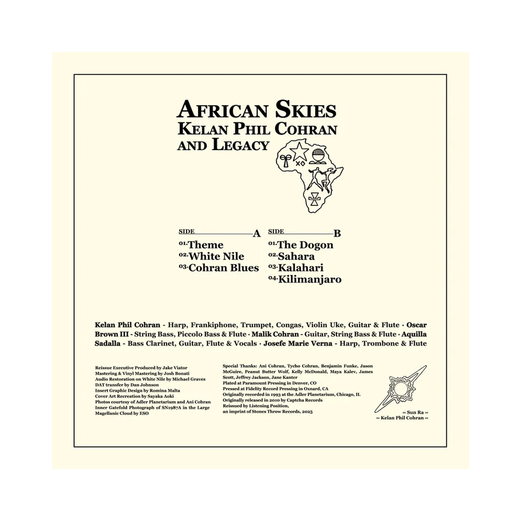 "Kelan Phil Cohran & Legacy's spiritual jazz masterpiece African Skies. A holy grail for jazz collectors. Kelan Phil Cohran was a member of the pioneering afro-futurist Sun Ra Arkestra and appears on several of their most acclaimed recordings. He released several albums of his own compositions in the 1960s with his band The Artistic Heritage Ensemble, including a revelatory tribute to Malcom X - a well-known collectible for jazz aficionados." - Listening Position