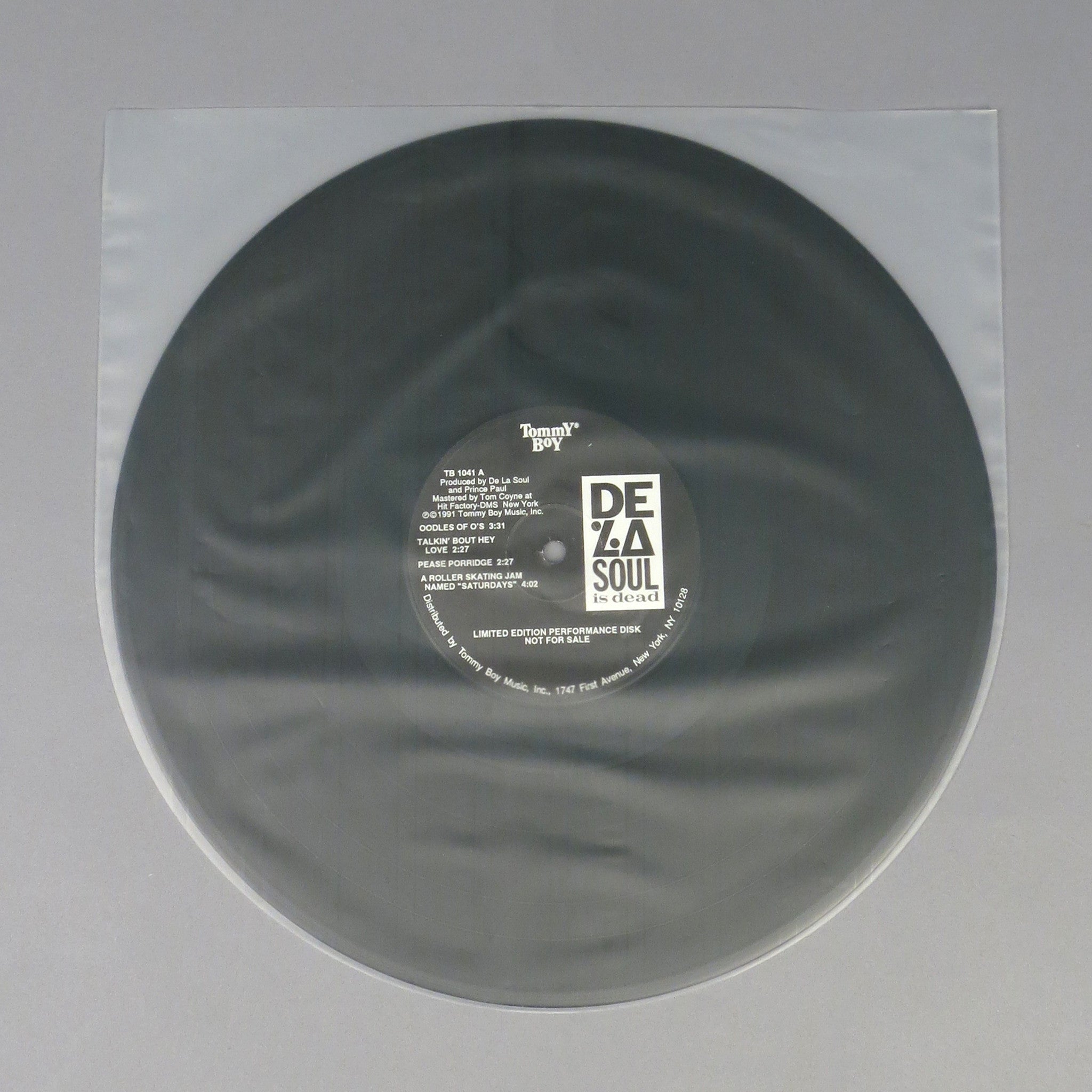 Upgrade your inners with our custom round bottom sleeves. These sleeves feature a round bottom, no crumple design that make it easy to slide records in and out (way easier than the standard paper joints). Constructed of smooth anti-static, non-scratch polyethylene; fits all 12" records. Comes in a pack of 50 with Lab sticker included.