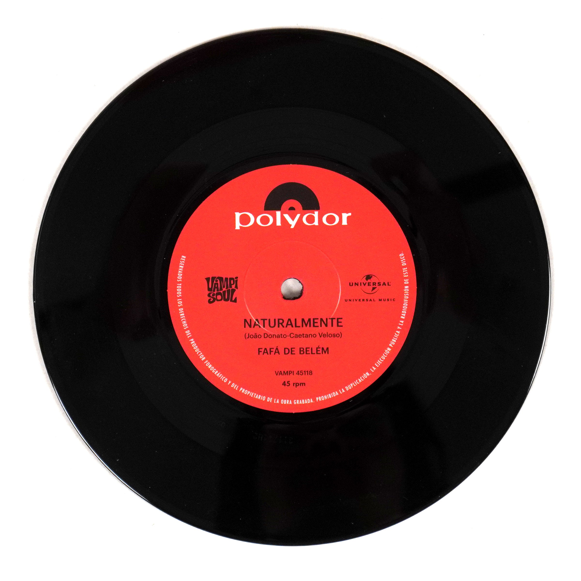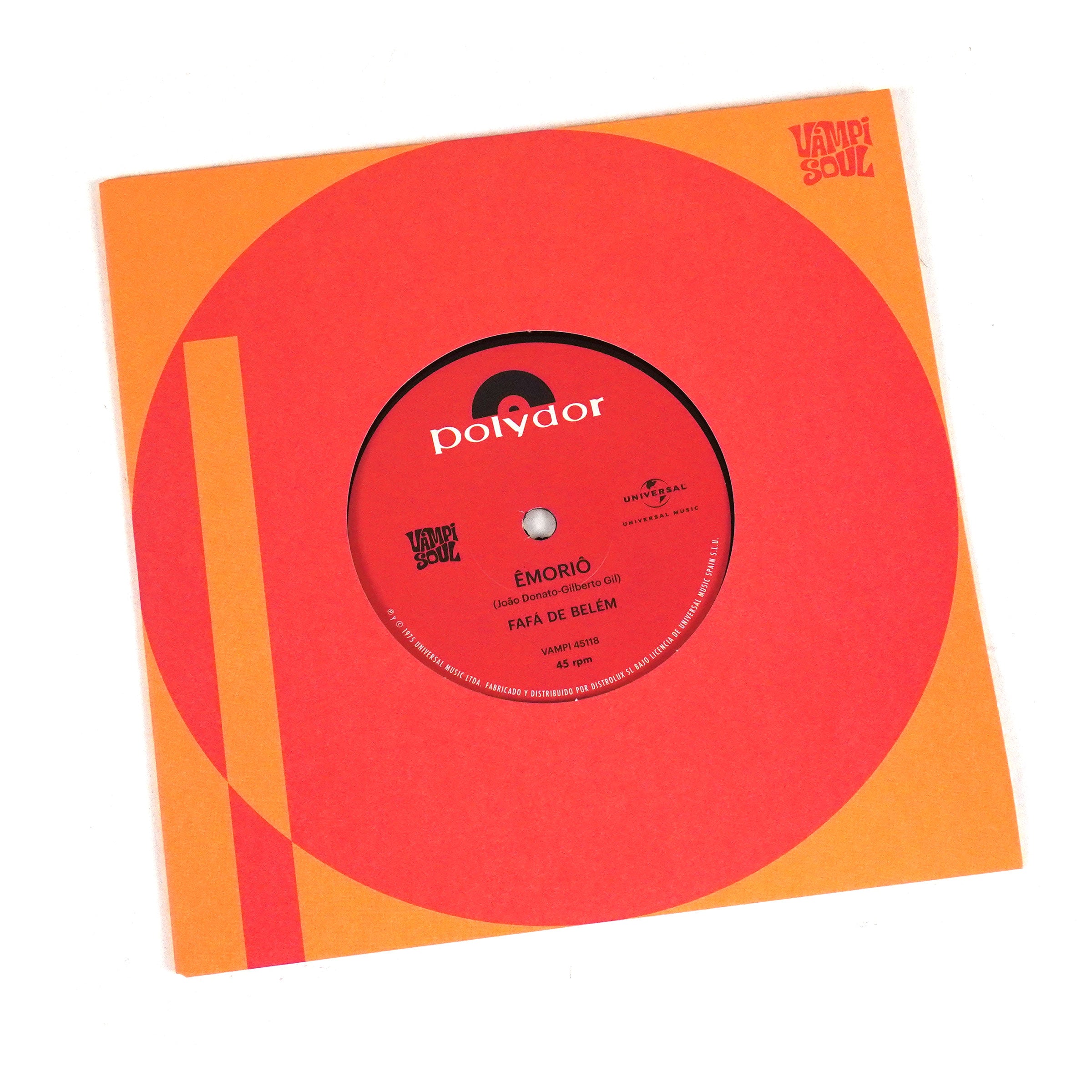 "Singer and actress Fafá de Belém is one of Brazil's most beloved and popular artists. This vinyl single from 1975 marked the very beginning of her long and successful career in Brazilian popular music and, over the years, has become a highly sought-after collector's item among DJs worldwide. The record features two tracks, 'Êmoriô' and 'Naturalmente,' written by João Donato alongside Gilberto Gil and Caetano Veloso, originally released on his album Lugar Comum that same year. Fafá de Belém's versions, however, strip away the originals' sophisticated arrangements in favor of a more driving groove and a raw, funky edge that makes them absolute dancefloor weapons." - Vampi Soul