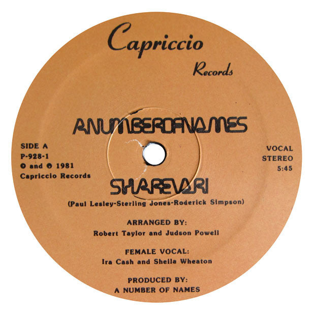 • Reissue of one of the of the most sough-after and influential Detroit dance records from the early 80's. A Number Of Names' "Sharevari" is one of those classic dance records that ends up on everyone's list eventually, yet is frustratingly tough to find on OG press. Originally recorded back in 1981 at the crossroads of disco, new wave, house, and techno - the track fused lo-fi drums, sinister synths, and raw vocals to create a unique and freaky vibe unlike anything else at the time. As the story goes, "Sharevari" is a song about the stylish, forward-thinking Detroit club scene, specifically a club called Charivari (named after a New York clothing store), that laid the groundwork for the techno revolution to come. See the video below for a glimpse into this scene. The track still kills it to this day, and always manages to bring all the real freaks out on the floor! Includes the original vocal version with the instrumental on the flip. Essential.
