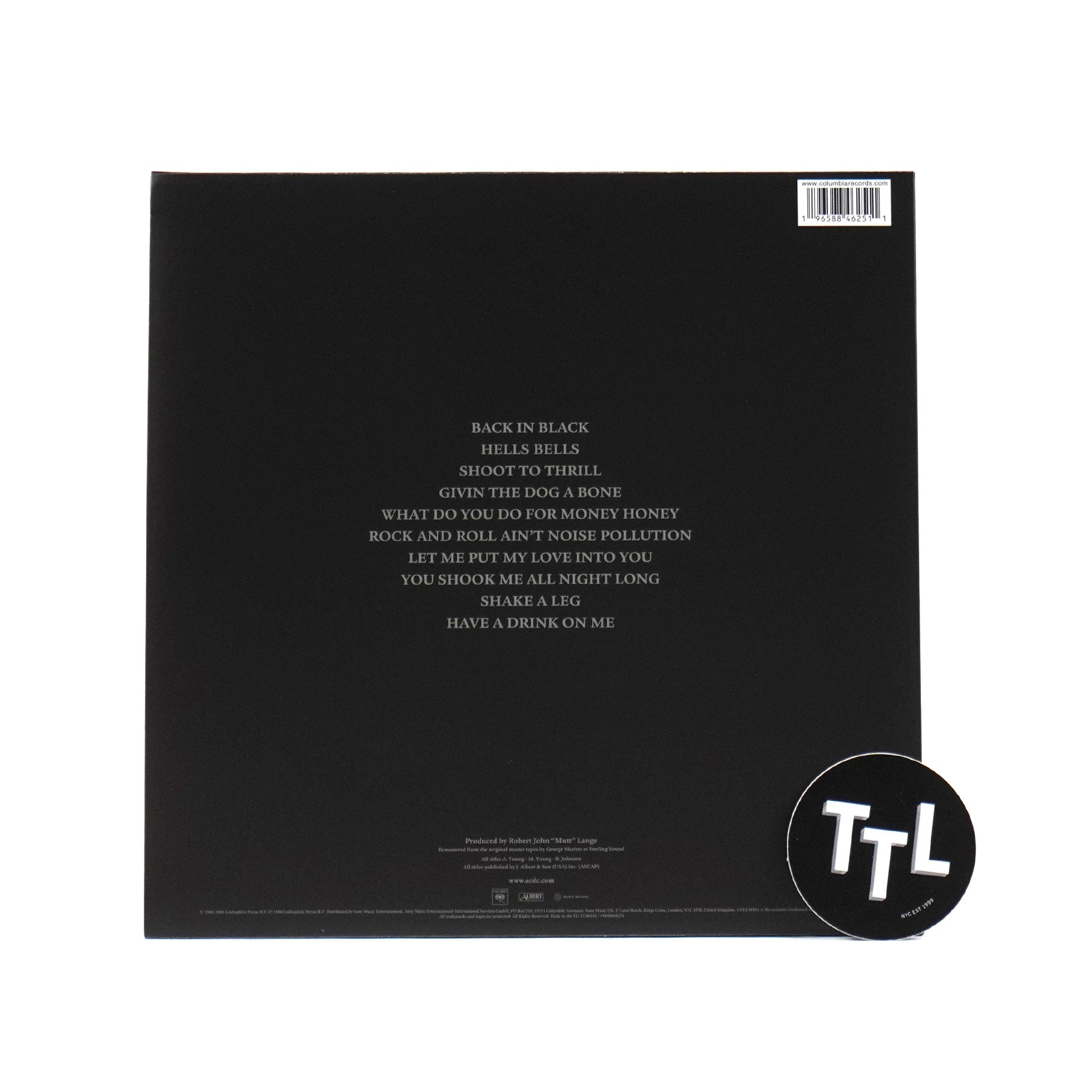 "Released in July, 1980, Back in Black was the first AC/DC album recorded without former lead singer Bon Scott, who died in February of that year. Back in Black was the first album to feature vocalist Brian Johnson, formerly of Geordie. Producer Robert John 'Mutt' Lange, who had previously worked with AC/DC on Highway to Hell, was again brought in to produce. The album was recorded at Compass Point Studios in Nassau, Bahamas, and Electric Lady Studios in New York, where the album was also mixed." - Sony Legacy