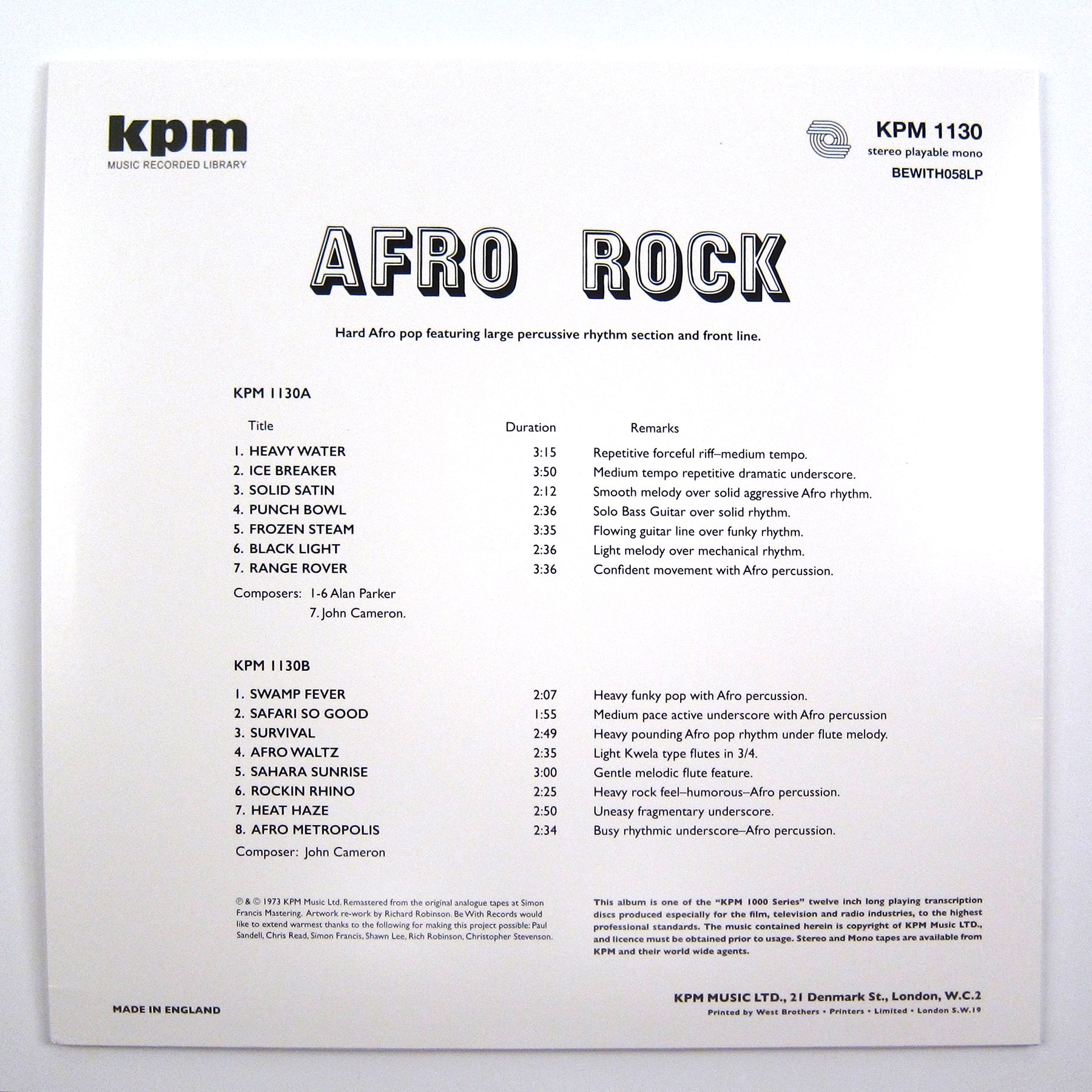 Originally marketed on the albums rear as: "Hard afro pop featuring large percussive rhythm section and front line," "Afro Rock" is way deeper than the relatively bland description espouses. Recorded at Morgan Studios in London by John Cameron and Alan Parker in 1973, "Afro Rock" features a collection of stripped-down African rhythms, virtuoso jazz instrumentation, fuzzy wah-wah guitars and nasty spaced-out library breaks. As Cameron himself described it in Unusual Sounds, this is “heavy duty drum-and-bass salsa music”. The album is one of the best loved records in the KPM catalog, and one of the most sought after within the "KPM 1000 Series" canon (originals currently are going for $300+ on the second hand market). Check the songs "Heat Haze," "Frozen Stream," "Safari So Good," "Swamp Fever" (which sounds a bit like The Budos Band), and "Black Light" (oo those keys!) for a blistering taste of sampler-heaven. As always, Be With went the extra mile on these KPM 1000 Series reissues, remastering the original analogue tapes to get the highest quality product, and it doesn't disappoint! As with all these KPM records, don't snooze! Highly recommended from the Suede.