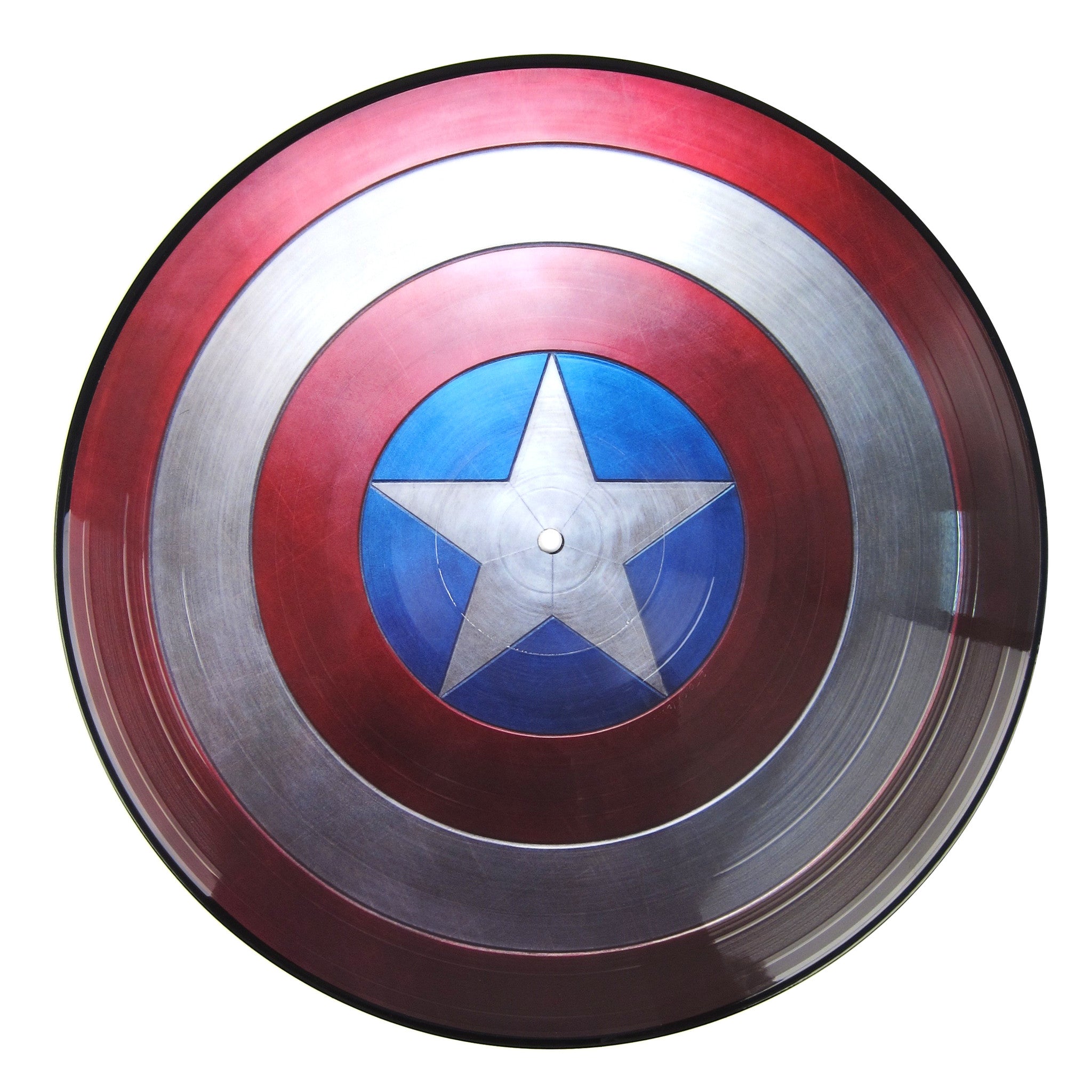 • Now on vinyl! The timeless score for Captain America The First Avenger is treated to a deluxe pic disc pressing featuring striking artwork depicting Cap's iconic shield, courtesy of Buena Vista Records. Veteran composer Alan Silvestri (who also did scores for Forrest Gump, Back To The Future, Roger Rabbit, etc.) is responsible for the stunning arrangements contained on these grooves that perfectly embody the heroic tone of this landmark Marvel film. Relive your favorite movie moments with the main title theme, "Invasion," "Passage Of Time," "Training The Supersoldier," "Captain America," and more. 16 tracks in all, limited edition.