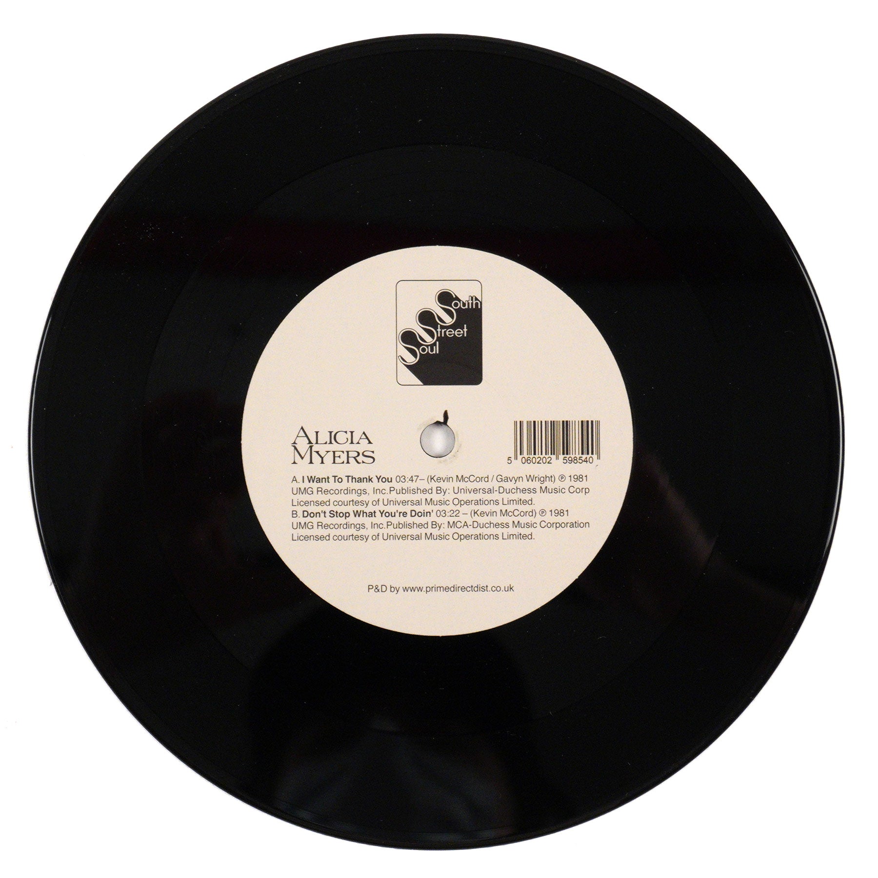 "Alicia Myers - I Want To Thank You' & 'Don't Stop What You're Doin' are staple classics and for the first time since their initial release in 1981 are together on one piece of vinyl. A serious double header! Both tracks are produced by Kevin ‘Mr Groove’ McCord, heralded as Dam Funk’s favorite producers and one of the founding members of Al Hudson & The Soul Partners & One Way before going on to contribute to hundreds of rnb, funk, disco, and boogie dancefloor movers in the ’70s and ’80s. At the height of his career he produced his One Way band members, Alicia Myers debut solo album, Alicia featuring both tracks on this release. I Want To Thank You, a certified classic that never fails to elicit a joyous reaction anytime it’s played & Don't Stop What You're Doin' famously sampled by J Dilla for ‘What It’s All About’ by Slum Village feat. Busta Rhymes on the legendary ‘Fantastic Vol.2’ album. Another fully licensed and remastered essential release from the South Street family!" - South Street Soul