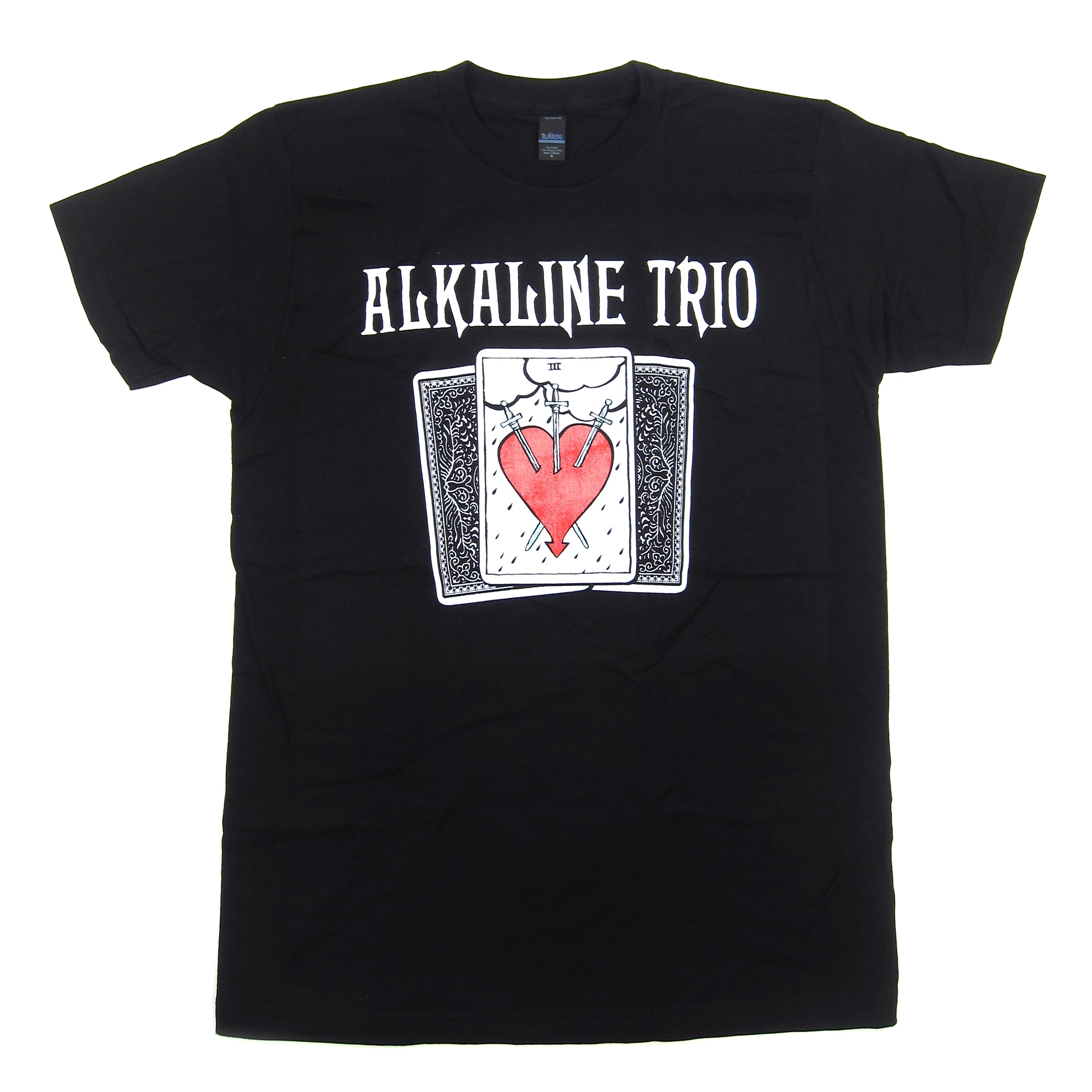 Official Alkaline Trio shirt featuring custom tarot card graphic. Comes printed on all cotton, standard fit tees.