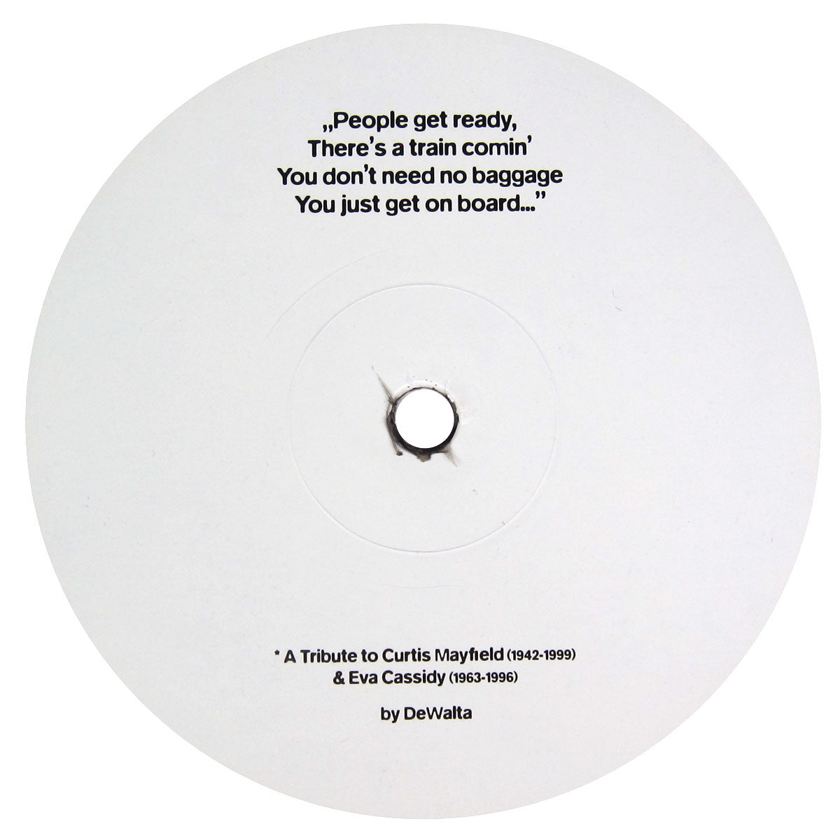 This is one of those records that when you drop, other DJ's bum rush the booth to trainspot. Somewhere between jazz, house, and minimal techno comes "People Get Ready," a tribute to Curtis Mayfield and Eva Cassidy from DeWalta (according to the label). The track has a wild energy that's got "secret weapon" status written all over it - deep, pounding beats, jazzy loops, soulful vocal samples - plus it's a white label, so go figure. Seriously heavy vibes going on here, something like Soho Hot Music meets Ricardo Villalobos. Wait till the right time to drop it and watch the walls come down. Recommended.