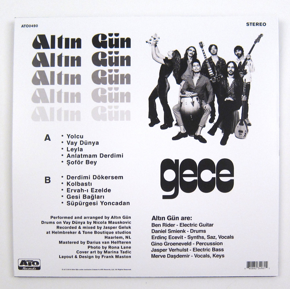 Bass player Jasper Verhulst formed Altin Gun to channel his deep affection for Turkish folk and psychedelia, and Gece is the follow-up to the Amsterdam-based band's hotly tipped 2018 debut, On. Drawing from Anatolian rock & folk of the late '60s and '70s, the band pumps out "explosive, funky and transcendent" psych rock for the modern audience, and the record makes for an electric listen full of fresh grooves and gritty psychedelic textures. What Verhulst & co. excel in is reimagining the sounds they are covering: "we're not trying to copy it, but these are the sounds we like and we're trying to make them our own." Vocals from Erdinc Ecevit & Merve Dasdemir seduce over instrumentals consisting of the saz (a three-string Turkish lute), keyboards, guitar, bass, & drums, and Altin Gun's interpretations of Turkey's musical past (except original piece "Sofor Bey") are best showcased on: "Yolcu," "Supurgesi Yoncadan," "Leyla," and "Kolbasti."