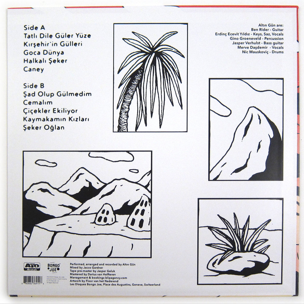 Altin Gün is psyche-garage rock band that integrates influence from generations of Turkish folk songs with garage riffs and funk licks. On is the debut album from Altin Gün, continuing a rich tradition of opening doors between previously unconnected sonic worlds, following the footsteps of 70’s Turkish musicians such as Baris Manço, Selda Bağcan and Erkin Koray. These musicians took the traditional music and instrumentation of their culture, both formal and festive, and combined it with the heady rock sounds of the 70’s, leading to a sound both rich in history and imminently danceable. But their biggest influence is Neşet Ertaş, A Turkish folk musician of equivalent stature to Dylan, Jacques Brel, or George Gerschwin in his home country. His composition have effectively become standards in Turkey, reintroduced to endless generations over time. Altin Gün retain the themes and lyrics but reinterpret the compositions to a freakier, fuzzier place - shuffling time signatures and adding instrumentation while maintaining what made the songs beloved to begin with. The music is universal and effecting, even if you don’t speak a word of Turkish. “Kirsehirin Gulleri” is raw Saz (a 3-string lute) riffs and reverberating vocals over throbbing bass, “Kirsehrin Gulleri” is low-slung bass, chipper percussion and jangly riffs. Pressed on limited edition turquoise and blue swirl vinyl.