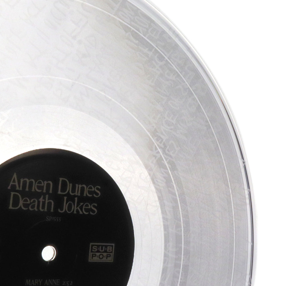 "Loser Edition on clear vinyl. Tip-on gatefold jacket with custom dust sleeves and insert. With Death Jokes, for the first time since the project's incarnation in 2006, the spiritual reflections and meditations of Amen Dunes are turned away from himself, and out sharply towards the world. The album is also a drastic turn musically and thematically, rooted in the electronic music of raves and of rap music he grew up with but never imagined himself able to make, playing like a scathing electronic essay on America's culture of violence, dominance, and destructive individualism. The work on Death Jokes began just weeks before the first word of the pandemic came in the winter of 2019; it was completed three years later as we began to emerge from the worst. The album's meaning morphed as the pandemic went on, first a reflection on our attachment to form, and to ourselves, and then shifting into a solemn indictment of our culture's blind spots as we misjudge and attack, veiled self-centeredness and self-importance masquerading as morality." - Sub Pop