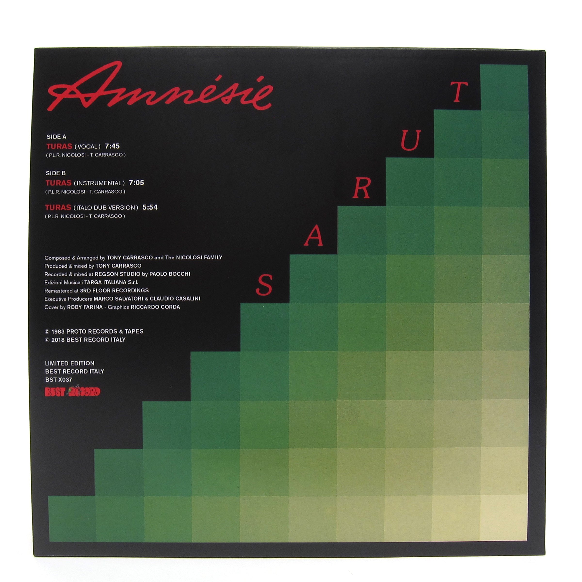 He will rock you out, he will funk you out! Amnesie's Italo disco classic inspired the early house movement and still sounds funky and fresh today. Heavily played in Chicago along with the likes of Mr. Flagio and Kasso, clean copies of the original 1983 pressing are few and far between. Produced by Tony Carrasco of Klein & M.B.O. "Turas" hits all of the sweet spots. This one's an essential for all you Italo heads out there. Includes the unreleased "Italo Dub Version." Recommended.