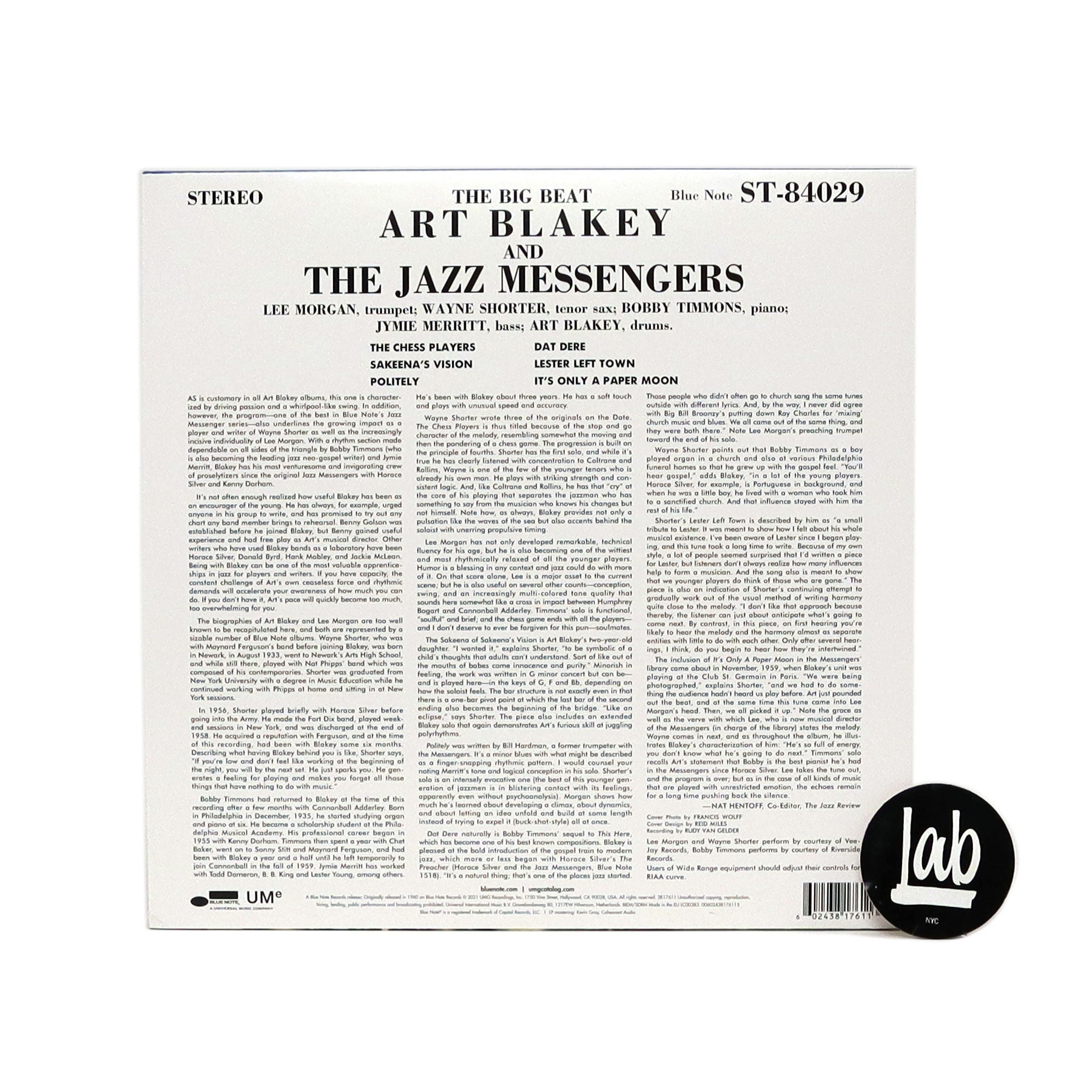 "The timeless 1960 hard bop classic The Big Beat was the album that first introduced one of the greatest line-ups of Art Blakey & The Jazz Messengers to the jazz public with the legendary drummer and bandleader joined by trumpeter Lee Morgan, tenor saxophonist Wayne Shorter, pianist Bobby Timmons, and bassist Jymie Merritt. Shorter was the band’s newest member, and it was immediately clear that his presence would steer the group’s sound in a new more modern direction. Three of the album’s six pieces were penned by Shorter including the swaggering set opener 'The Chess Players,' the imaginative 'Sakeena’s Vision' written for Blakey’s young daughter, and the tribute 'Lester Left Town' which was dedicated to influential jazz tenor forefather Lester Young. However, it was Timmons’ unforgettable gospel-influenced tune 'Dat Dere,' a suitably soulful follow-up to the band’s previous hit 'Moanin’,' that the album would ultimately become best-known for. This excellent edition of The Jazz Messengers would go on to record a phenomenal run of classic albums including A Night In Tunisia, Like Someone In Love, The Freedom Rider, Roots & Herbs, and The Witch Doctor. This Classic Vinyl Edition is all-analog, mastered by Kevin Gray from the original master tapes, and pressed on 180g vinyl at Optimal." - Blue Note Records