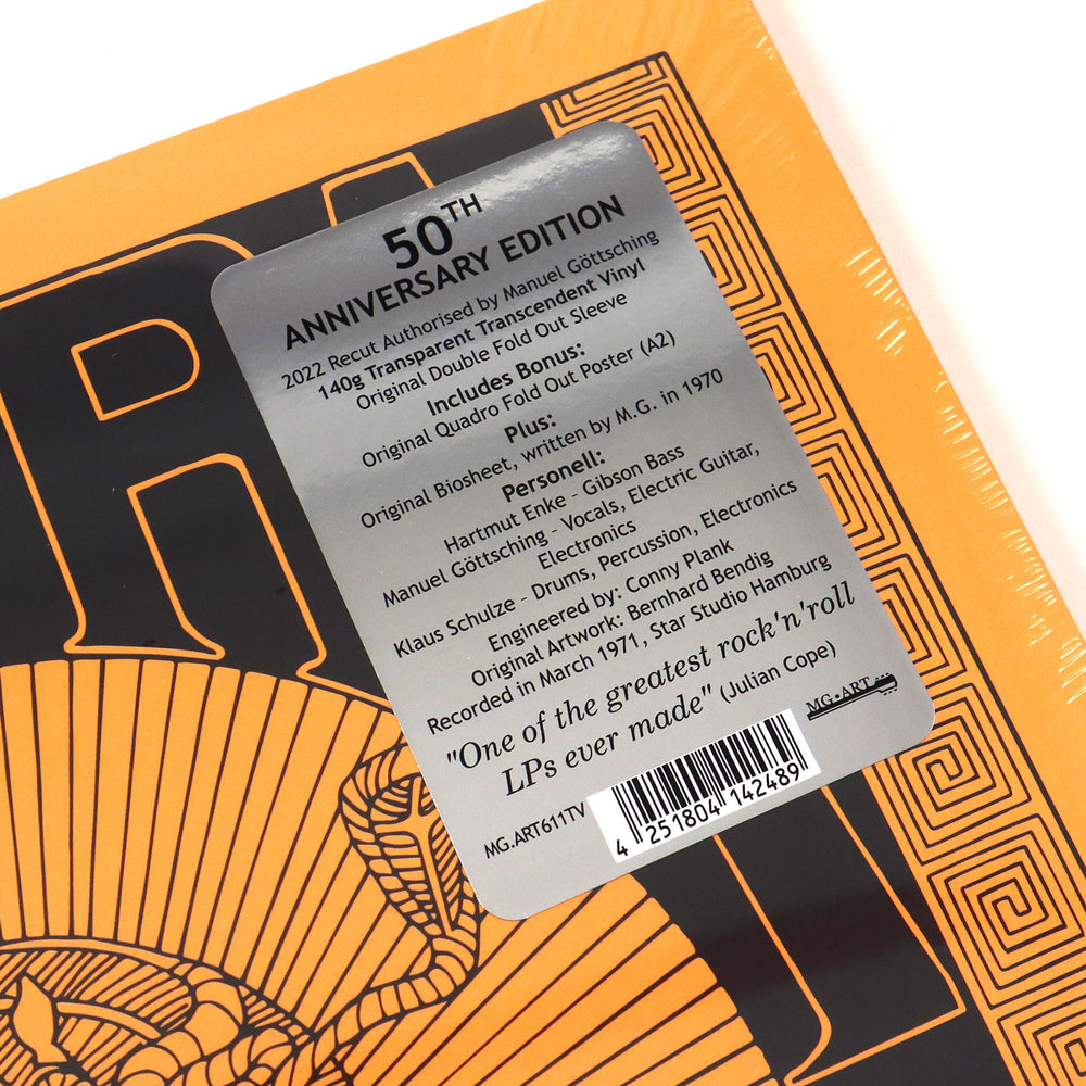 "Transparent vinyl version. First-ever official reissue on vinyl since 1975. Ash Ra Tempel is the eponymous debut studio album by the Krautrock band Ash Ra Tempel. It features guitarist Manuel Göttsching with drummer Klaus Schulze and bassist Hartmut Enke. Engineered by Conny Plank, it was recorded in March and June 1971 on Ohr Records. This 50th Anniversary Album will be released in memoriam of all the musical contributors to this release and on Manuel Göttsching's MG.ART label. 50th Anniversary RE-Edition, Re-Cut carefully overseen by Manuel Göttsching. 350 gram Quadro Fold Out Sleeve that exactly replicates complex/original OHR die-cut jacket, A2 Poster, 2x (German and English) A4 Inlay with Original Bio Sheet written by Manuel Göttsching (1970). Pressed at Optimal, Germany." - MG.ART