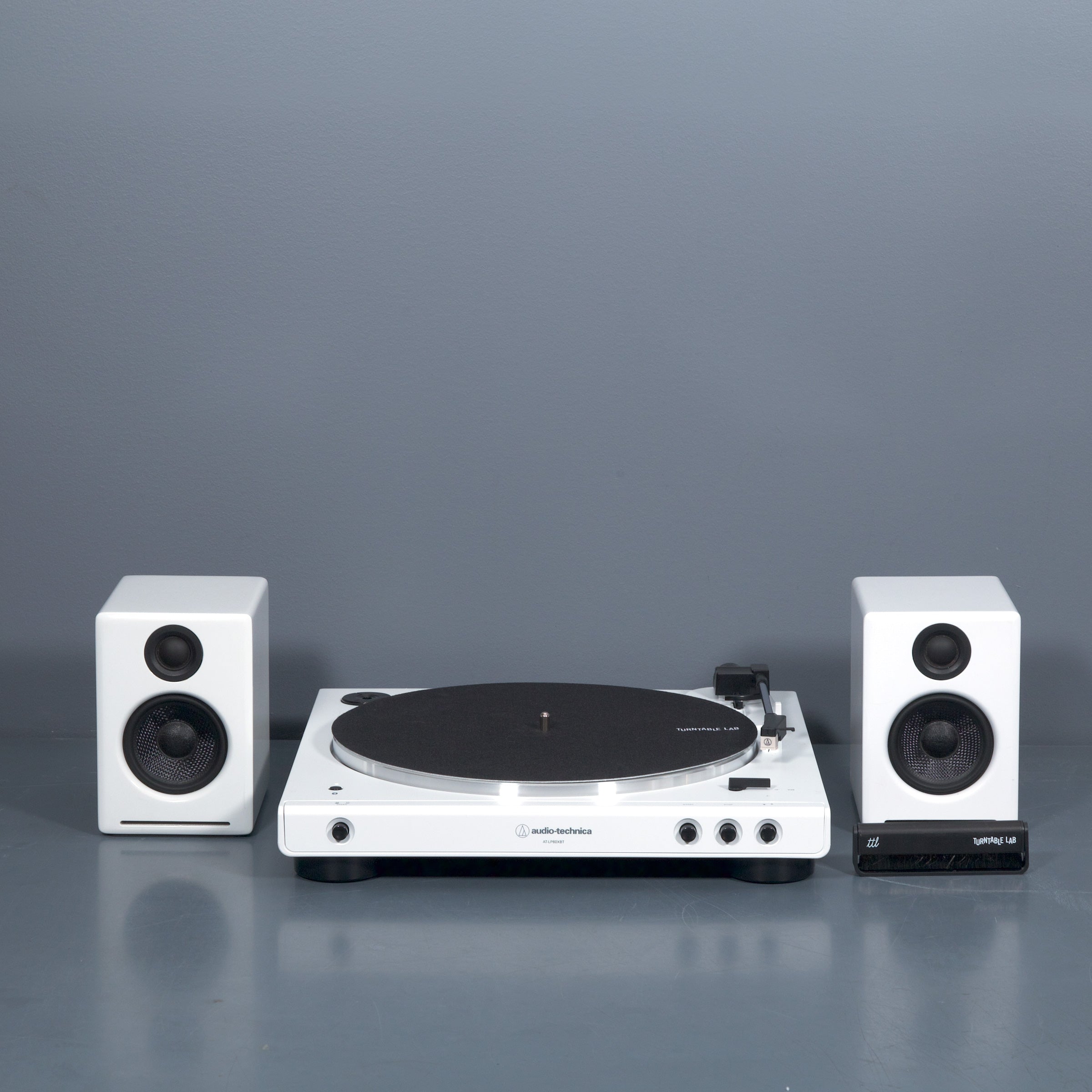 "The AT-LP60xBT is our bestselling Bluetooth turntable. Initially this white colorway was a limited edition, but due to popularity it's become a catalog staple. We've paired the turntable with our most popular speakers. If you want compact, go for the A2+. For mid-size, go for the YU4. For full-size, pick between YU6 or A5+. " - TTL