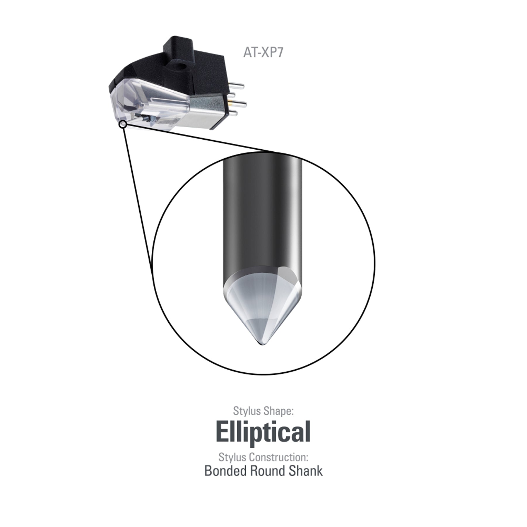 "With strong tracking force, elliptical stylus, and the highest level output for the XP series, the AT-XP7 is an excellent choice for DJing. The cartridge design also offers maximum visibility of the stylus tip making it easy to cue up the next track." - TTL