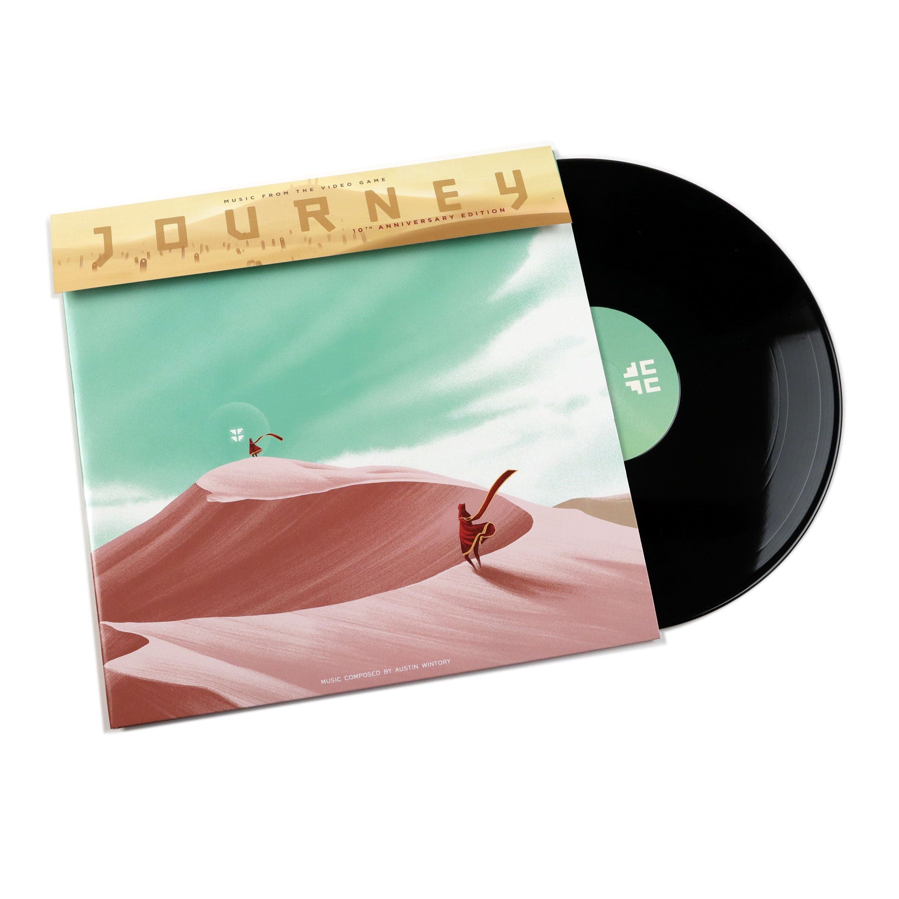 "Iam8bit is proud to announce the soundtrack from the critically acclaimed PlayStation game, Journey, available for the first time on vinyl. The result of a superfun collaboration between SCEA Santa Monica Studio and indie developers thatgamecompany, Journey features stunning visuals, innovative cooperative gameplay, and an amazing music score performed by live orchestra and featured soloists. Composed by Austin Wintory, the music from Journey tells a story of its own and enjoys the honor of being the first video game soundtrack to be nominated for a Grammy Award. We teamed up with acclaimed artist, Mark Englert, to create original album art that honors the beauty and emotional voyage that players experience when traversing the world of Journey. iam8bit began 10 years ago as an art show - so naturally, we view EVERYTHING as a canvas, including vinyl records. This set includes two picture discs, featuring unique art on each side (for math junkies, that's FOUR different sides of visual goodness!). The scarf of the Traveler wraps around the album's perimeter, creating an almost hypnotic effect as it spins. If you pay close attention to the Traveler's robe, you'll notice that the embroidery becomes more ornate as you progress from side A to side D - just like each time you beat the game." - Iam8Bit