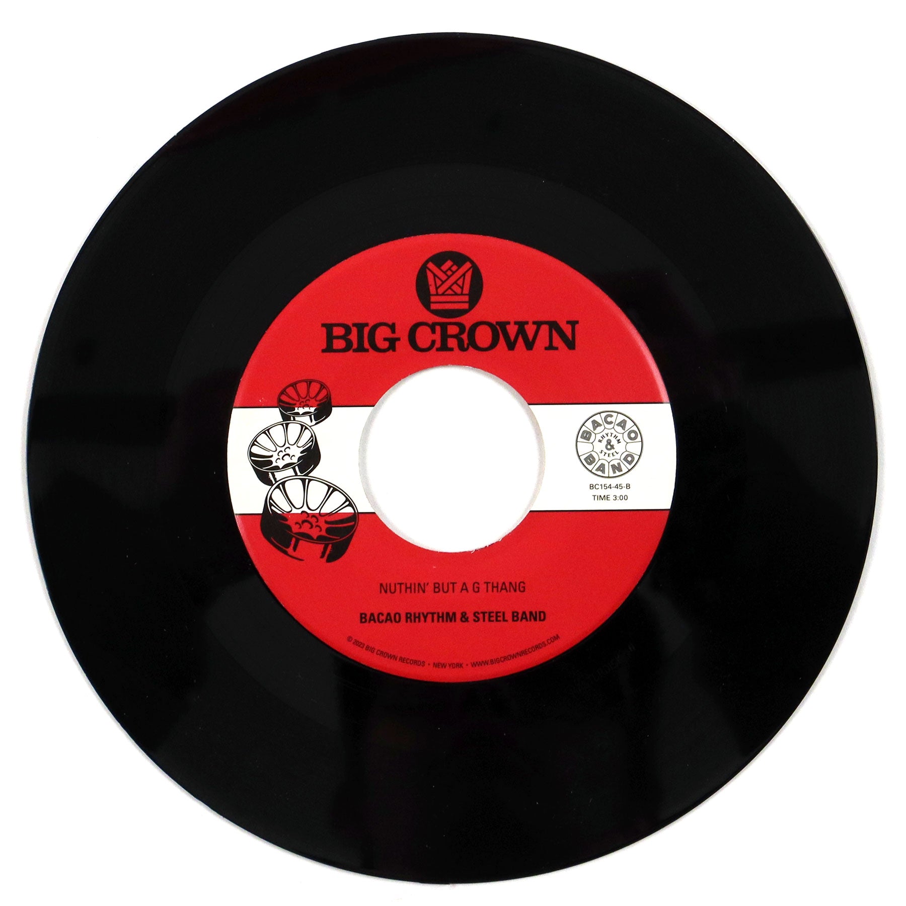"Bacao Rhythm & Steel Band are back with a heavy two sider of West Coast Hip Hop covers that put a new spin on tried and true classics. Side A is their cover of The Game and 50 Cent's 'How We Do', one of the standouts from Game's 2005 debut album. It was their cover of 50's PIMP that really put Bacao on the map and now they are back to lend their sound to another club hit. Steel pans and horn lines trade off over their signature heavy drums and breathe new life into this classic. The B Side is another show stopper. Bacao takes on Dr Dre & Snoop Dogg's 'Nuthin But A G Thang' and give it a proper treatment. Staying close to the original and replaying the iconic synth and bass lines on the pans proves to be incredible. This will be working its way through DJ sets around the globe as soon as it hits the streets." - Big Crown Records