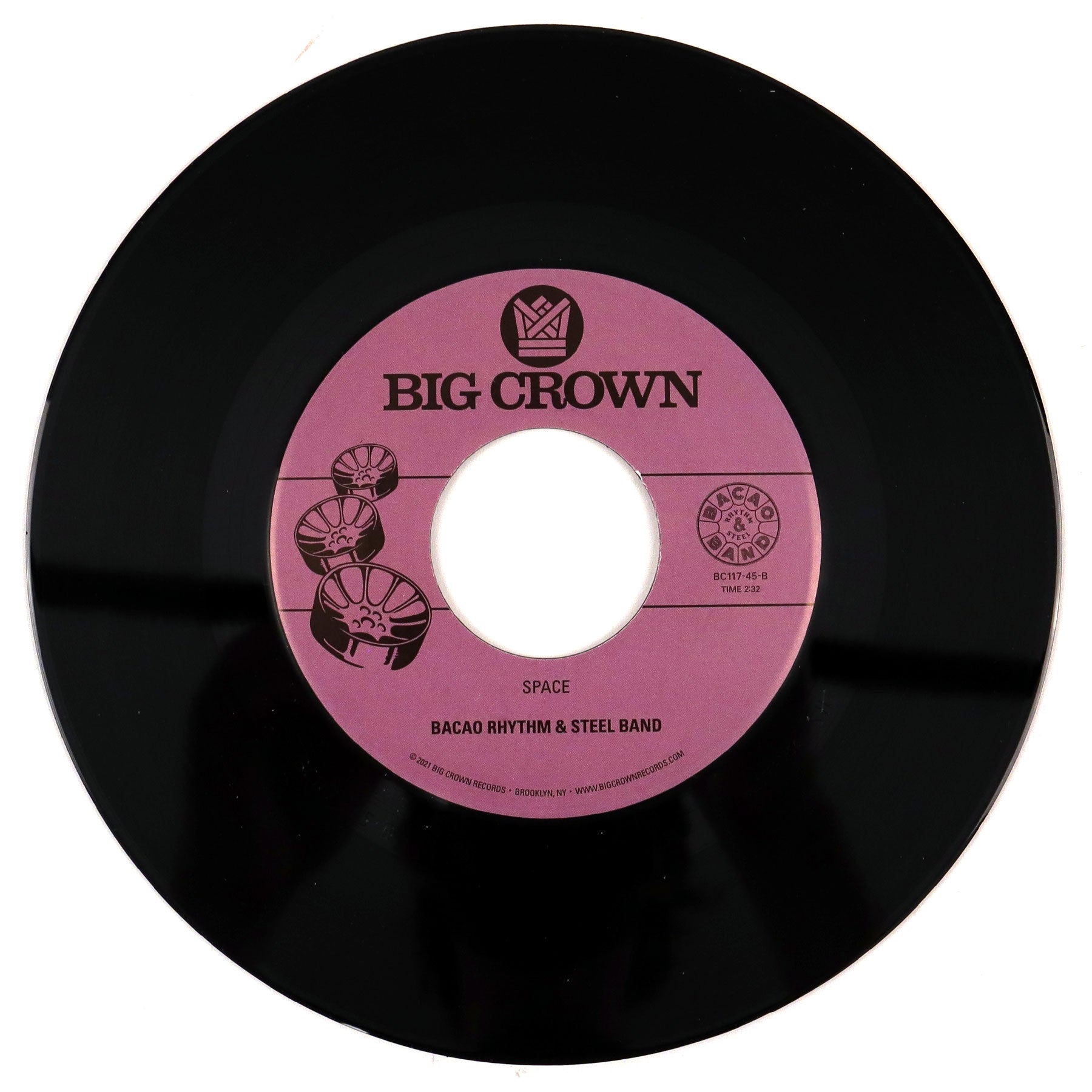 "In the wake of their new album Expansions, Bacao Rhythm & Steel Band drop another must have two-sider.On the A side they take on the J DIlla produced Slum Village club banger 'Raise It Up' and give it the BRSB treatment. SV fans will lose their shit when this comes on. Heads will be nodding from the first beat of the opening drum break and when they start playing the top line on the pans it’s a wrap. Now that they have your attention they take the tune and expand on it changing the arrangement and lacing it with brass and guitar parts that keep pushing the tune to higher and higher levels of energy.The B finds BRSB taking on the infamous Galt MacDermot tune 'Space'. Made famous in the hip hop world when it was sampled for Busta Rhyme’s classic 'Woohah Got You All In Check' it is about to receive another boost from Bacao’s version. Both sides of this 7” are going to be mainstays in DJ sets for years to come." - Big Crown Records