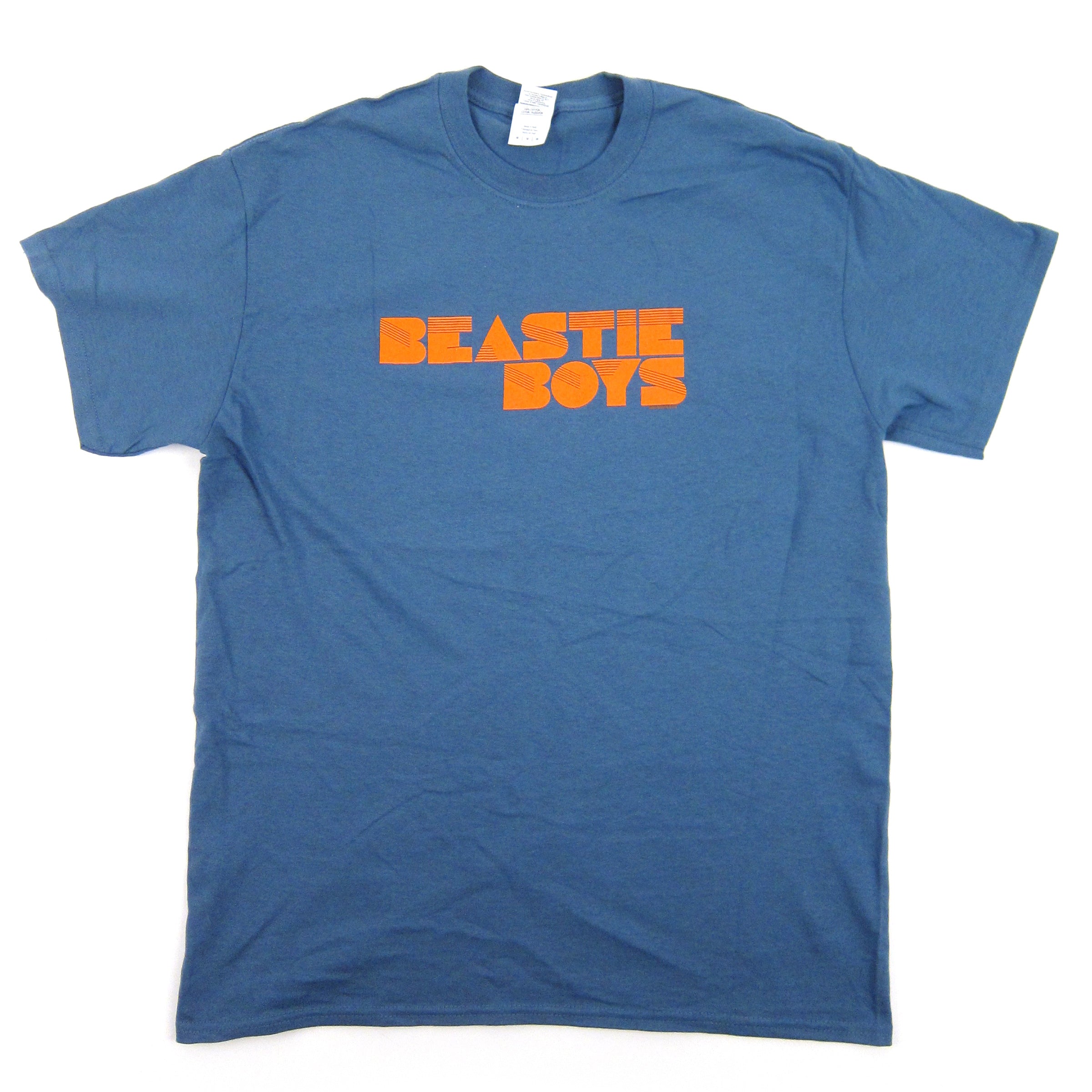 Official Beastie Boys logo tee featuring a retro-futuristic font treatment as seen on the cover of To The 5 Boroughs. Printed on all cotton, standard fit tees.