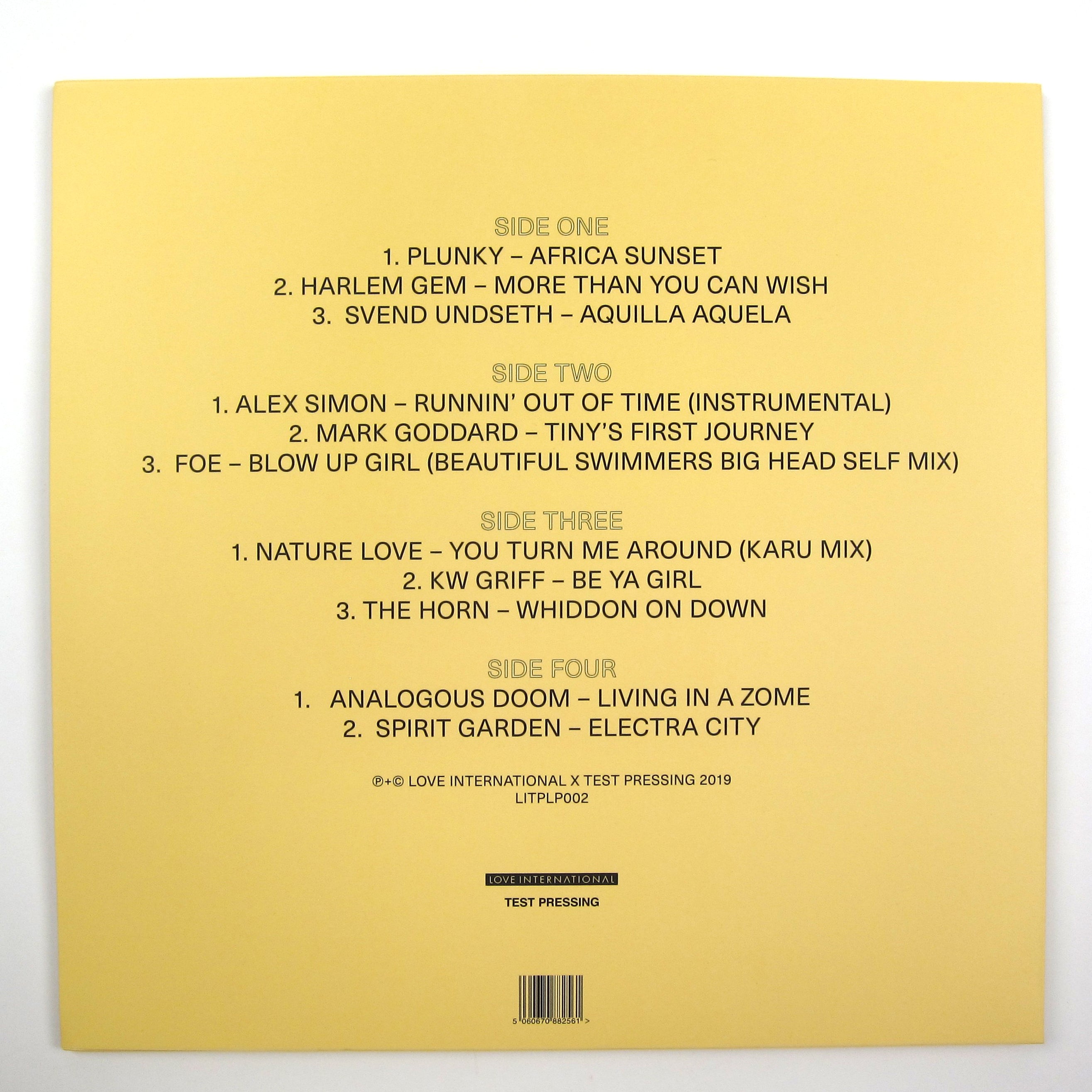 Ahhh, yes. DC’s Beautiful Swimmers (Future Times boss Max D and World Building jefe Ari Goldman) hand-picked these eleven tried-and-true club joints for this second entry in the Love International Fest comp series, run by the folks behind testpressing dot org, with tracks ranging from $100 wall record to dollar bin deepness, plus a few exclusive edits and first time on vinyl specials. The selection represents the duo’s wordly approach to digging and DJing, casting a wide berth that encompasses deep UK techno treats (The Horn’s “Whiddon On Down,” Spirit Garden’s “Electra City”), balearic ambient fusion (Plunky’s “African Sunset,” Svend Undseth’s “Aquilla Aquela”) and hyper-localized B-more club killers from KW Griff and Diamond K associate Foe. There’s something for any dance music lover to latch onto somewhere in this tracklist, from the heavenly Karu deep house mix of Nature Love’s “You Turn Me Around” to Legowelt-grade melodic techno stunner “Living In A Zone” by Analogous Doom (shoutout Missouri!) or private press DC boogie weirdness “Running Out Of Time” by Alex Simon. KW Griff’s utterly perfect flip of Teedra Moses’ “Be Your Girl” (Ahmad Jamal sample!) is Baltimore Club at its most sensual and sublime; pick it up just for this one, people. Everyone in the office already got their grubby mits on a copy so don't get left in the dust. Recommended!