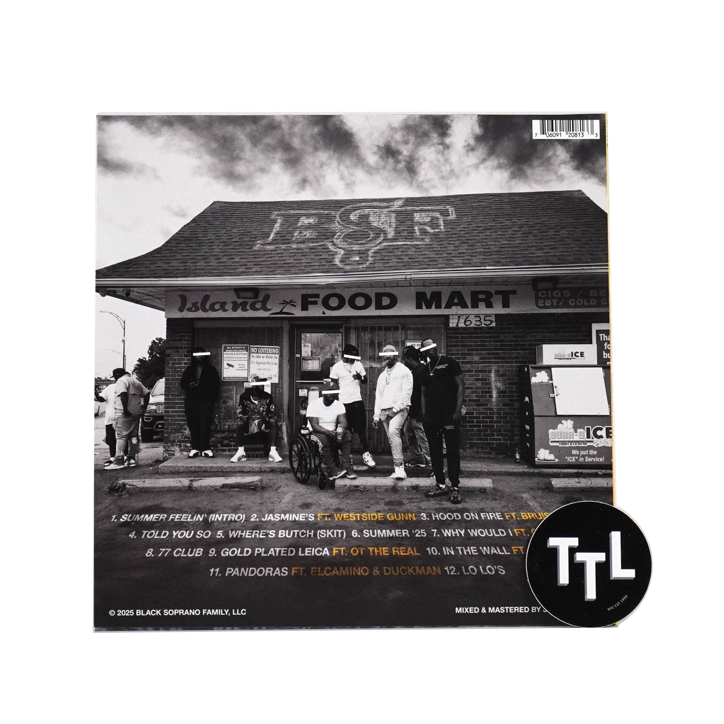 "Buffalo’s own Benny The Butcher returns with Summertime Butch 2 — a razor-sharp follow-up that cements his status as one of rap’s most consistent and commanding voices. Now available on limited-edition vinyl, this 12-track project finds The Butcher blending his signature street wisdom with summer-ready energy, delivering a body of work that’s as introspective as it is hard-hitting. He’s joined by an all-star lineup — with features from Westside Gunn, G Herbo, OT The Real, Bun B, and more — each bringing their own weight to a project rooted in authenticity and precision. The production is lush yet gritty, balancing soulful samples with hard drums that cut through like Benny’s pen. Available for the first time on vinyl, this release is a must-have for collectors and fans alike, an essential addition to any Griselda or modern rap catalog." - Black Soprano Family