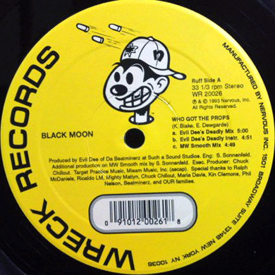 Another classic Black Moon 12". Its very telling that none of these classic 12" is more classic than the others- indicative of the Beatminerzs board supremacy back in 93. Again another obvious but simply genius Blue Note sample (Ronnie Laws Tidal Wave) lays down the jazzy vibe for this floor jumper. The b-side is "Fuck It Up," a 12" exclusive cut that has always been one of my favorite instrumentals. Instrumentals included for both tracks including the MW Smooth Mix (altered drums) of "Who Got the Props."