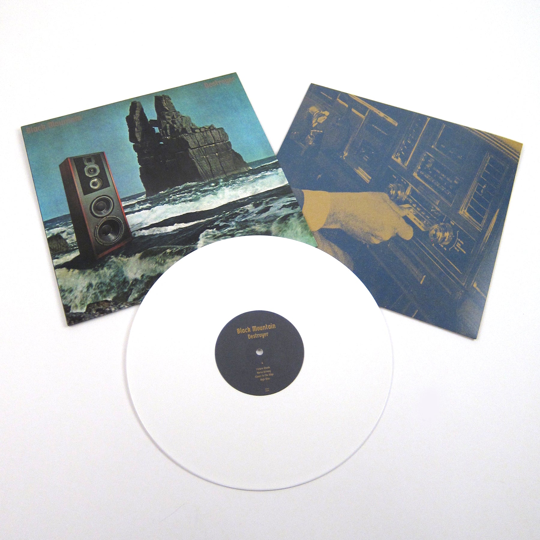 Black Mountain is a psychedelic rock band from Vancouver, BC. Destroyer is their fifth record, and their fiercest and most focused effort yet. The album is inspired by group founder Stephen McBean finally getting his driver’s license and experiencing the freedom (and fear) of the wide open road. Destroyer gets its title from the 1985 Dodge Destroyer, a one-run-only hunk of Detroit steel. The album was produced by John Congleton (St. Vincent, War on Drugs, Mountain Goats), and is eight tracks over a concise 43 minutes. The album features several drummers, including Adam Bulgasem (Soft Kill), Kilph Scurlock (Flaming Lips), and Kid Millions (Oneida). The main riff of “Future Shade” was described by McBean as one that has “traveled around the world then hit the bong with a chorus a year and a half later”, but we think it sounds like Ozzy singing through a megaphone over early Judas Priest. “Horns Arising” is stadium-sized Sabbath riffs with icy vocoder, “Boogie Lover” is built on a snaking bass riff with guitar washes cutting through like headlights in fog. “License To Drive” is rumbling Bad Seeds drumrolls and layers of anxious keyboards. This LP is pressed on indie exclusive white vinyl and includes a printed inner sleeve with album lyrics.
