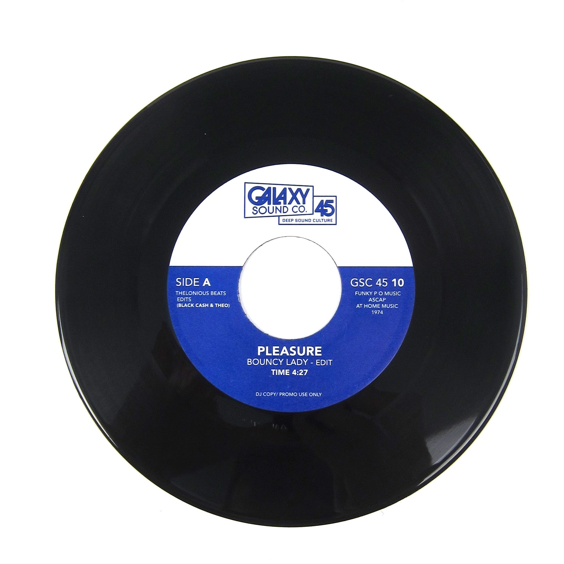 portable funk two-tracker from reliable edit crew. Galaxy Sound has become a cop-on-sight label due to Blackcash & Theo’s consistent and respectful edits of the rarest funk & soul breaks. This time around, the duo throw up two golden era hip-hop staples, Pleasure’s “Bouncy Lady” and The Whatnauts’ “Why Can’t People Be Colors Too”. Both are revered for their tantalizing drum breaks which served as the foundation for dozens of classic records, but played in full are absolute floor-fillers for funk & soul DJs. So this 7” is highly welcome in my bag as original copies of both records are cold chilling at Skull Snaps prices on ’Scogs. Blackcash & Theo give both sides a gentle edit for the selectors.