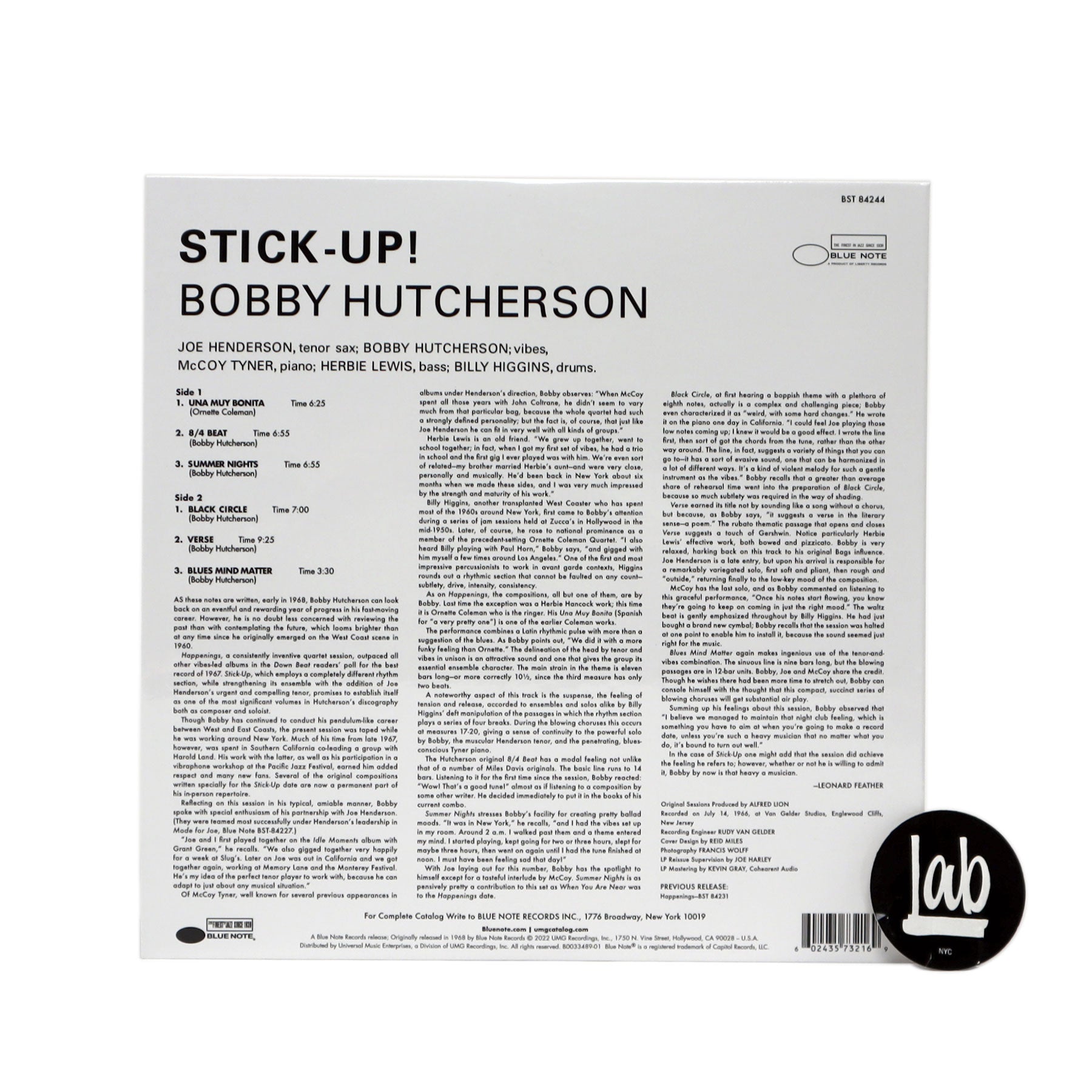 "Vibraphonist Bobby Hutcherson had a profound influence over the sound of Blue Note Records in the 1960s, with his distinctive vibes elevating a wide range of all-time classics from Grant Green Idle Moments to Eric Dolphy Out To Lunch. His fifth Blue Note session as a leader, 1966’s album Stick-Up! found Hutcherson in the company of a new band line-up with Joe Henderson on tenor saxophone, McCoy Tyner on piano, Herbie Lewis on bass, and Billy Higgins on drums. The versatile quintet covers a vast expanse of post-bop territory on this excellent six-song set which opens with a spirited romp through Ornette Coleman’s 'Una Muy Bonita.' Five Hutcherson originals follow including the hard driving '8/4 Beat,' the dreamy ballad 'Summer Nights,' and the expansive 'Verse.'" - Blue Note Records