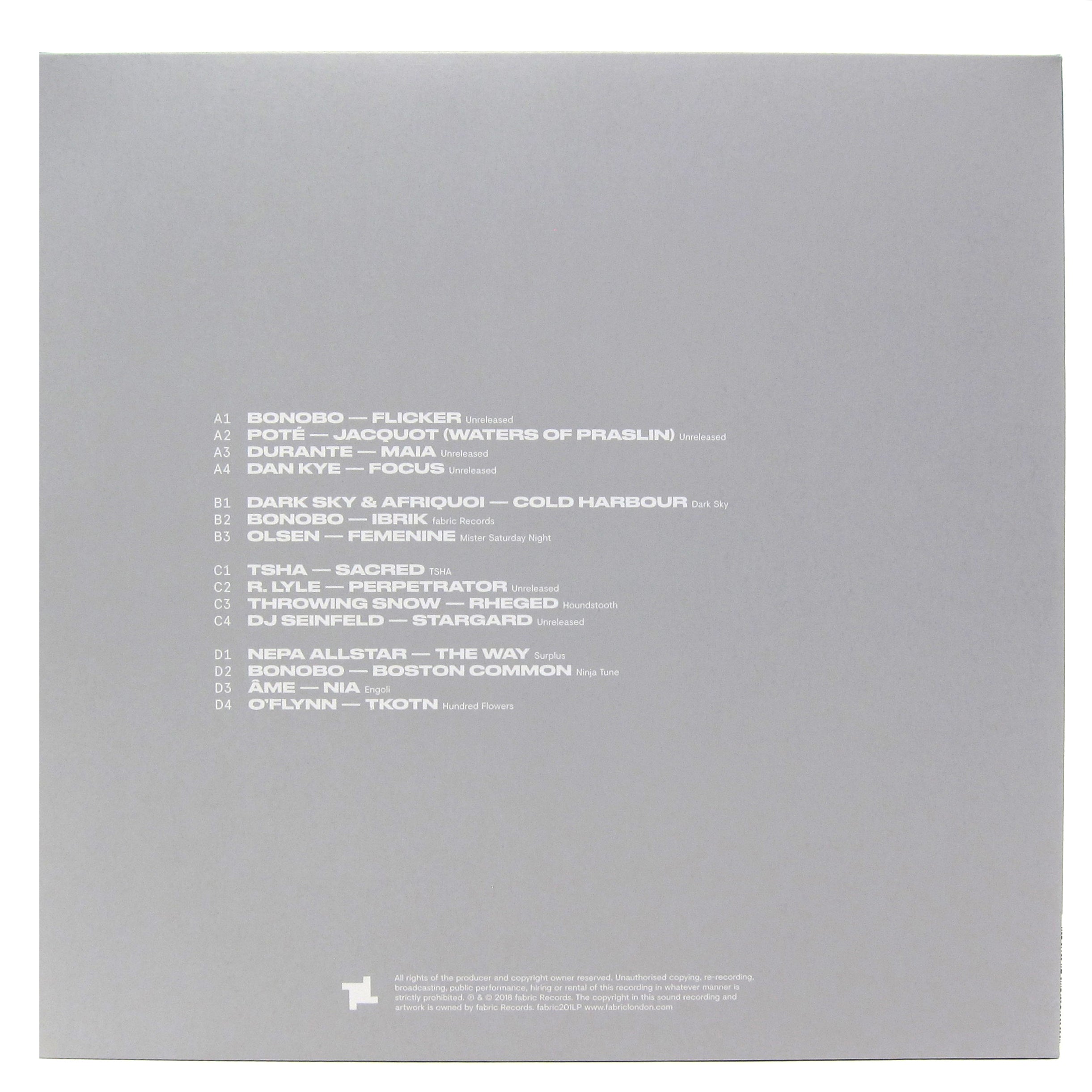 • FABRICLIVE and fabric have remained among the best-loved, most influential and longest-running DJ mix series of all time. They've remained central to London's club scene for almost 20 years, and after the 100th installment of their fabric series they pivoted to a revamped quarterly mix series, titled fabric presents. The inaugural mix, presented here, was compiled by UK-born electronic musician, producer, and atmosphere selecta Bonobo. While Bonobo may be best known for his sleek production style that harks to his fondness for jazz, soul, funk, and minimalism, his fabric presents mix goes into upbeat house mode, and doesn't disappoint. The first chunk of the mix is an explosive montage of melody and instrumentation, check the opener "Flicker," (an unreleased Bonobo exclusive) "Jacquot," by Poté and "Ibrik" (another unreleased Bonobo exclusive) for the vibe. Other tracks to check out are "Maia" by Durante, "Stargard" by DJ Seinfeld, "The Way" by Nepa Allstar, and "Nia" by Âme. Bonobo seamlessly balances the upbeat with the down-tempo and is able to play house, techno and breakbeat tracks that are grounded by an acute sense of harmonic progression and rhythmic complexity. Fabric's selection of him as their inaugural artist for this new series indicates that the next iteration of the series will continue to look beyond the club’s walls for inspiration. Pressed onto 2 LP's and features 15 of the 22 tracks from the mix (in their original, full versions). Released by Fabric.