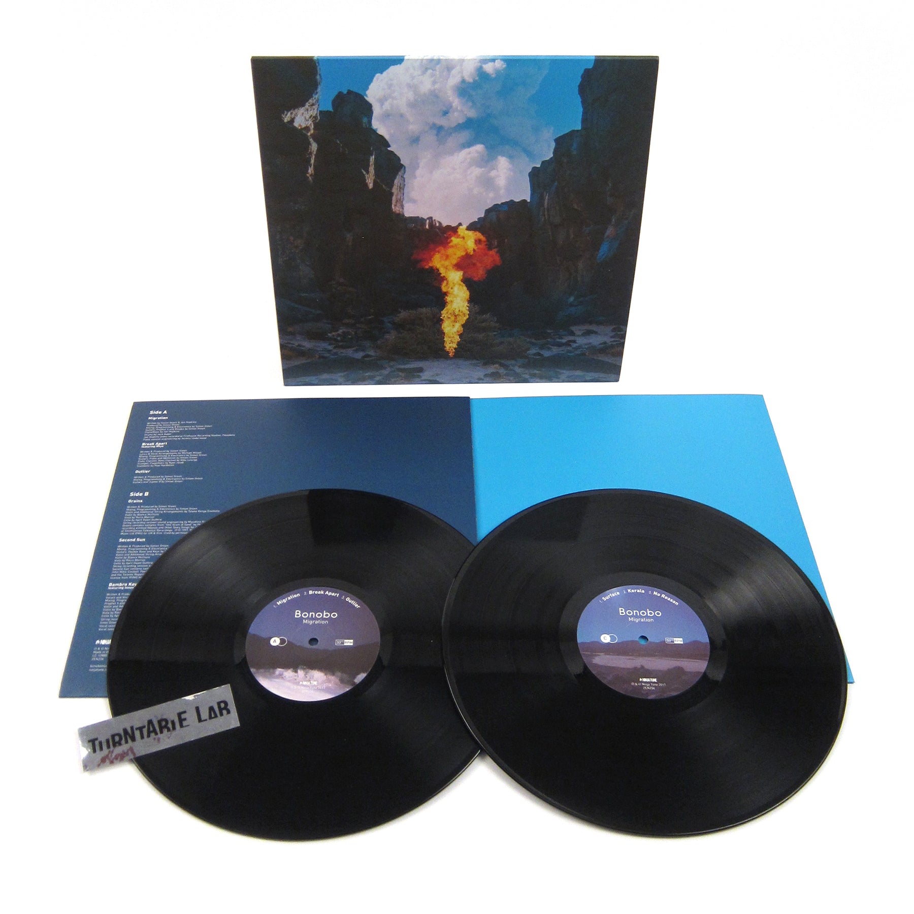 • True to its name, Migration draws on themes of intercontinental collaboration, familial diaspora, hybridized world influence and of course, travel. Originally from Brighton, England but currently based in Los Angeles, Simon Green has traveled the world over countless times since his debut on Ninja Tune, and he recruits a diverse cast of collaborators for his 6th album as Bonobo. New York-via-Morocco band Innov Gnawa guest on “Bambro Koyo Ganda”, Michael Milosh from Rhye delivers a slow burning R&B vocal on “Break Apart”. “Surface” features a blissful, reverb-soaked turn from Nicole Miglis of Hundred Waters. Nick Murphy (f.k.a. Chet Faker) lends vocals to big room 2-step bubbler “No Reason”. Combining live guitar & drums, Prophet 5 and Jupiter 8 synth, brass & string ensembles and Rhodes with Green’s own field recordings from his downtime on tour (rain, boat engines, laundromats), plus a heavy dose of 2-step garage rhythms that won’t be unfamiliar to anyone who’s caught one of his all night DJ sets at Output BK, Bonobo builds a world that is as simultaneously terrestrial, arboreal and gorgeous as the album’s packaging suggest.