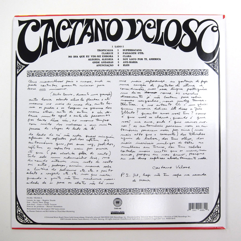 An absolute classic and one of the most important albums in Brazilian music. Originally released in 1968, the self titled solo debut by Caetano Veloso is one of the first forays into Tropicália music, demonstrating the “antropofagia” (artistic cannibalism) of the Tropicália movement. Drawing inspiration from psychedelia, rock, pop, Indian Music, Bossa nova, and Bahian music, Caetano aimed at releasing an album that would surpass the Beatles' Sgt. Pepper's in terms of creativity, while at the same time reflecting the new, more international, Brazil. This kind of musical and cultural cannibalism was found to be quite controversial in Brazil by both sides of the political spectrum, and resulted in the arrest / foced exile of both himself and Gilberto Gil in 1969 (to read a bit more about that exile, and the ensuing albums Caetano and Gilberto made, check Álbum Branco and A Little More Blue). The album includes the hits "Tropicália," "Soy Loco Por Ti, América," and "Alegria, Alegria," the latter of which was voted by the Brazilian edition of Rolling Stone Magazine as the 10th greatest Brazilian song of all time. This pressing by Third Man Records is the first ever authorized North American release, remastered from the original 1967 mono mixes. This album - a certified classic - is not to be slept on! 12 tracks in all, recommended.