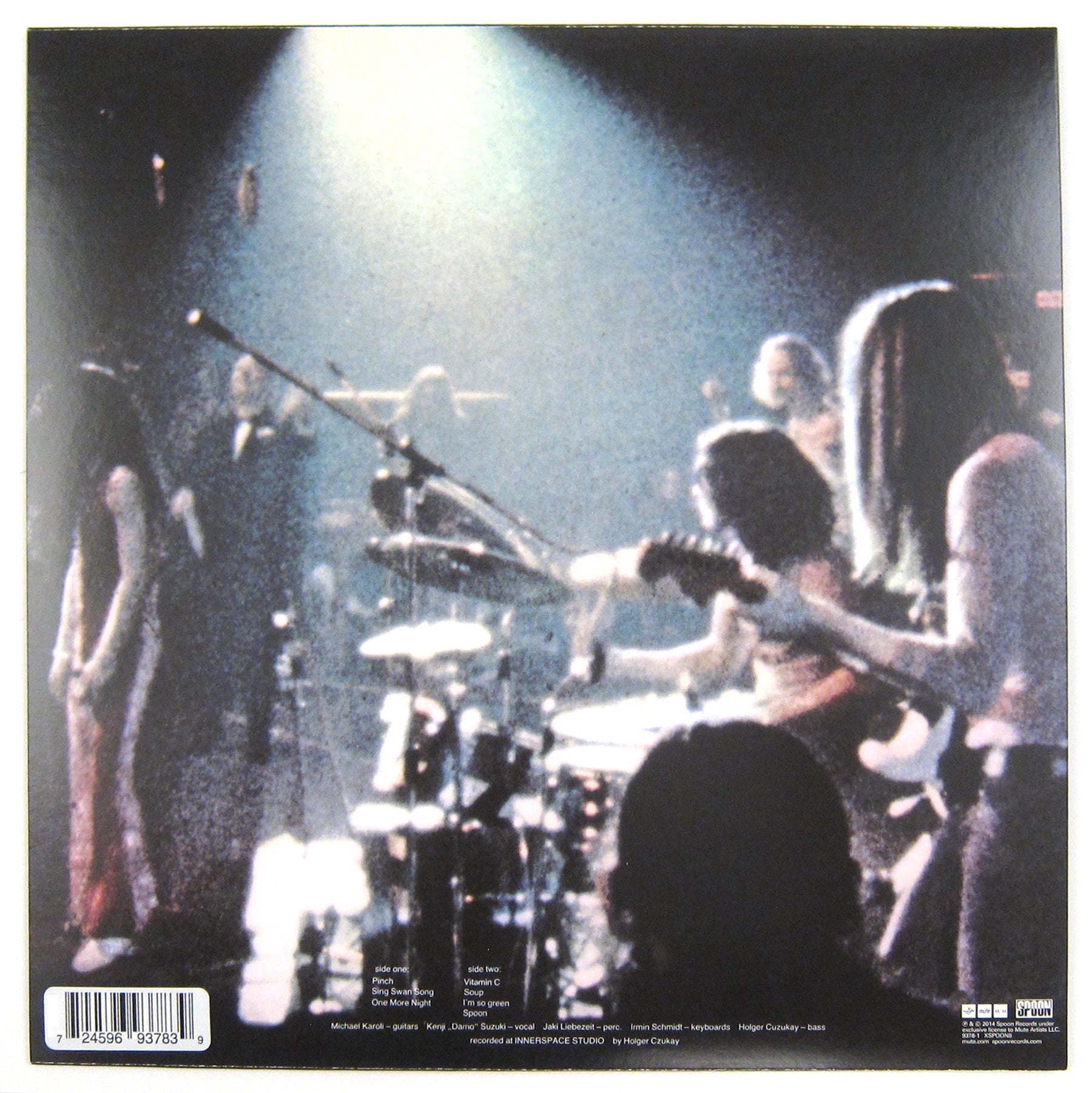 Usually when I listen to Can, all I can think about are all the groups that bit, I mean were "influenced" by, their sound. When listening to Ege Bamyasi however, I heard for the first time all the groups that Can incorporated into their style. The major influences have got to be the Beatles and James Brown's rhythm section, but there are a lot more. Right off the bat "Pinch" sounds like it samples "Mommy What's a Funkadelic," over processed guitar and drums just riding out the extended beat. While the music on "One More Night" is really a precursor to what we would hear from Zeppelin's House of The Holy a year later in '73, the drums sound straight off the best of Prestige's soul-jazz sessions. And how can we not mention the producer's favorite, "Vitamin C" (sampled by everyone from Kurupt to Spank Rock)? "Soup" takes us into the territory of their one time mentor Stockhausen, complete with eerie sound-scapes and glitches they didn't have a computer to create. Although they're still there, the influences aren't as pronounced on the other songs and I am back to disbelief of just how innovative these Germans were. My pick, music and production wise is "Spoon," which led to them charting in Germany because of it's use in a German gangster tv show called Durbridge. "I'm So Green" and "Sing Swan Song" both have beautiful melodies and rather coherent lyrics (a rarity for them, to say the least). All together, this is the most accessible Can album I have heard and I can't think of anyone who wouldn't find something they dig on it. 2014 Remastered version on translucent green colored vinyl.