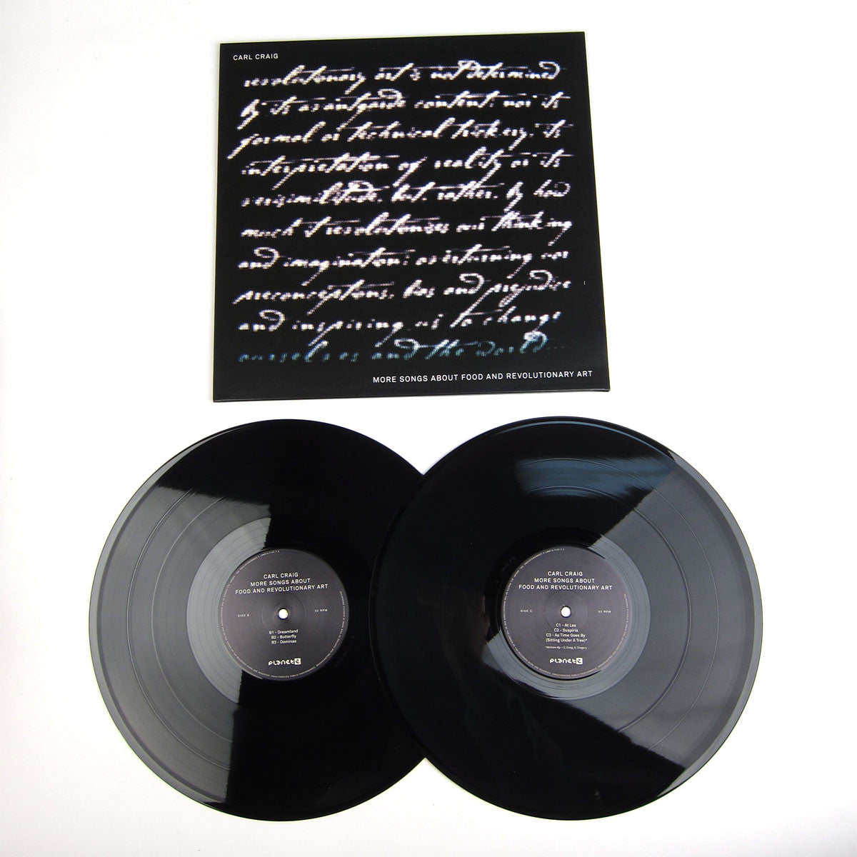Classic techno record from one of the leaders of Detroit's second generation. More Songs About Food And Revolutionary is one of Carl Craig's most respected and revered works. The album is a mind bending collection of genre defining tracks that would influence countless producers over the years. This 2014 repress has been remastered and features Craig's remix of Maurizio's (Basic Channel) "Domina" which is not on the original vinyl pressing. Craig pushed the boundaries of what techno could be, creating tracks that did not sound like anything that had come before. Tempos shift throughout the album, while lush pads define the atmosphere. The songs take their time to unfold through space, in contrast to the claustrophobic IDM that was developing across the pond at the time. Get yourself a copy of More Songs About Food And Revolutionary, an essential techno classic.
