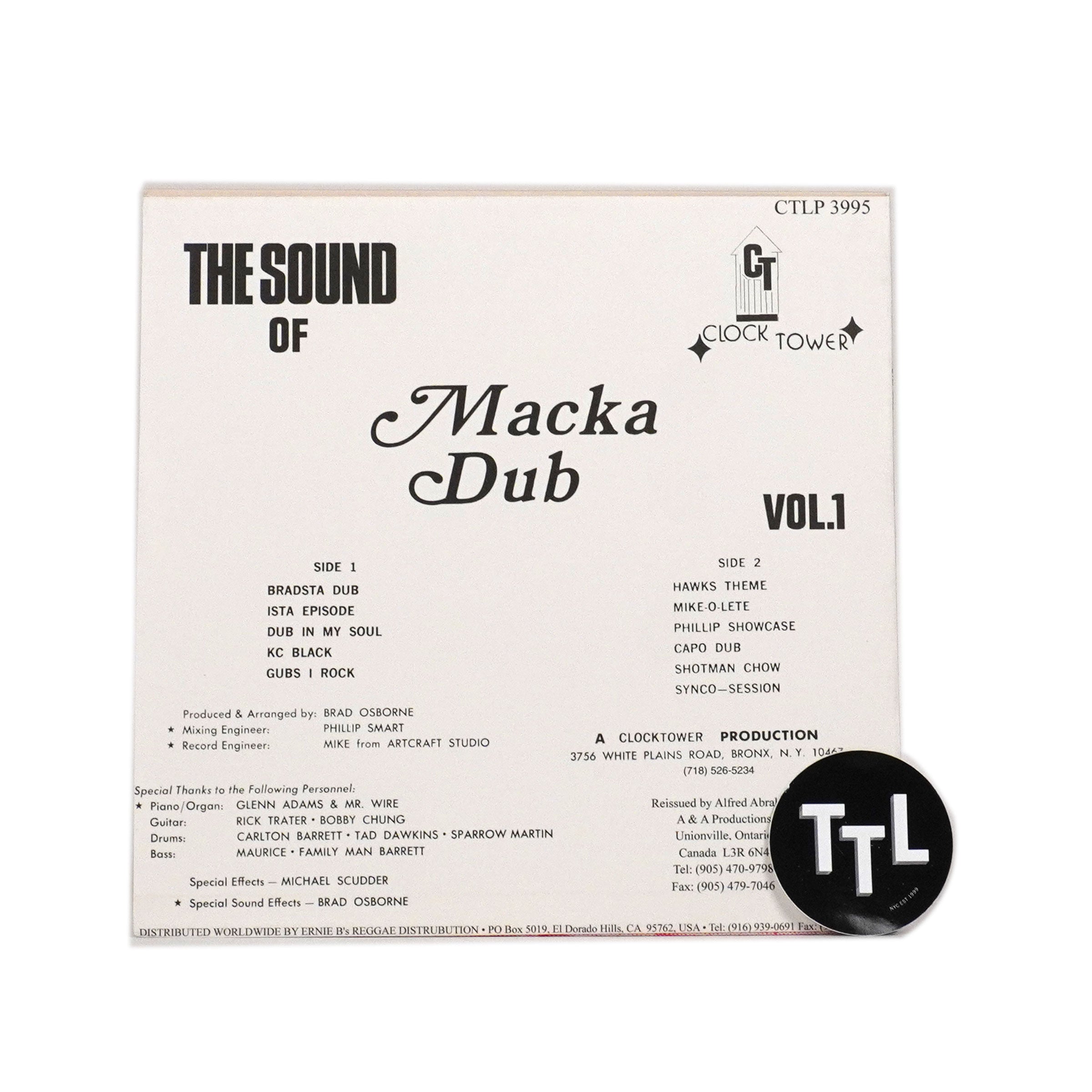 "Vinyl repress of The Sound of Macka Dub Vol. 1, originally released in 1980. Featuring Glenn Adams (piano/organ), Mr. Wire (piano/organ), Rick Trater (guitar), Bobby Chung (guitar), Carlton Barrett (drums), Tad Dawkins (drums), Sparrow Martin (drums), Maurice (bass), Family Man Barrett (bass). Produced and arranged by Brad Osbourne. Mixing engineer: Phillip Smart." - Clocktower