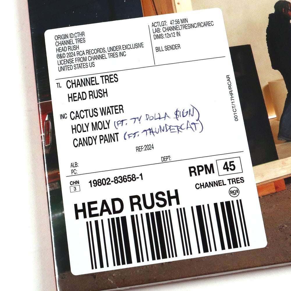 • "Debut album from American DJ/producer and rapper, Channel Tres. He recently featured on Kaytranada's album 'Timeless' on the single 'Drip Sweat'. Head Rush features all of the sonic hallmarks for which Channel Tres has become known since the release of his now-classic 2018 single 'Controller,' but finds him incorporating previously unheard influences that mark the beginning of a new musical chapter. " - RCA