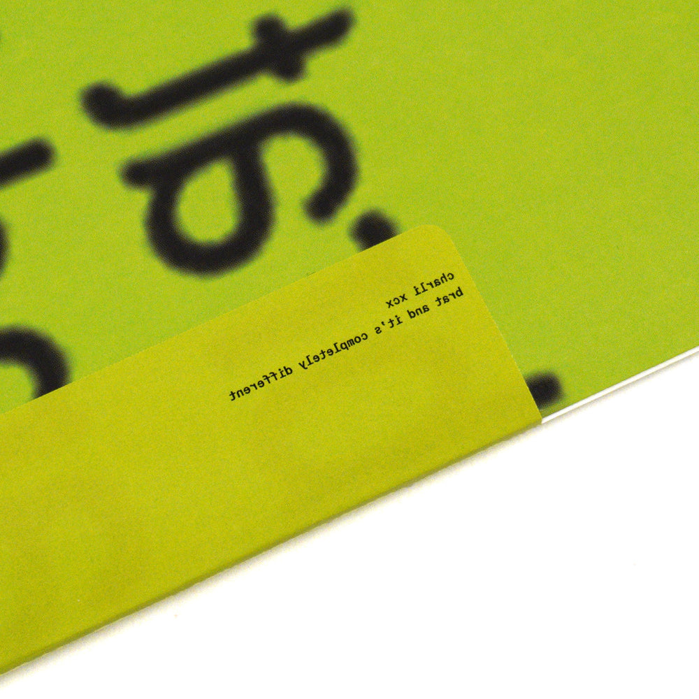 • "Brat and it’s completely different but also still Brat is the reworked album of Charli XCX's groundbreaking 2024 album BRAT, with reworks and guest appearances by Robyn, Yung Lean, Caroline Polachek, Julian Casablancas, Bon Iver, Ariana Grande, Troye Sivan + more. Brat green double vinyl. Gatefold with inner and outer die cut hole on both sleeves. Lyric book. new gatefold image. sticker inside shrink wrap. - Atlantic