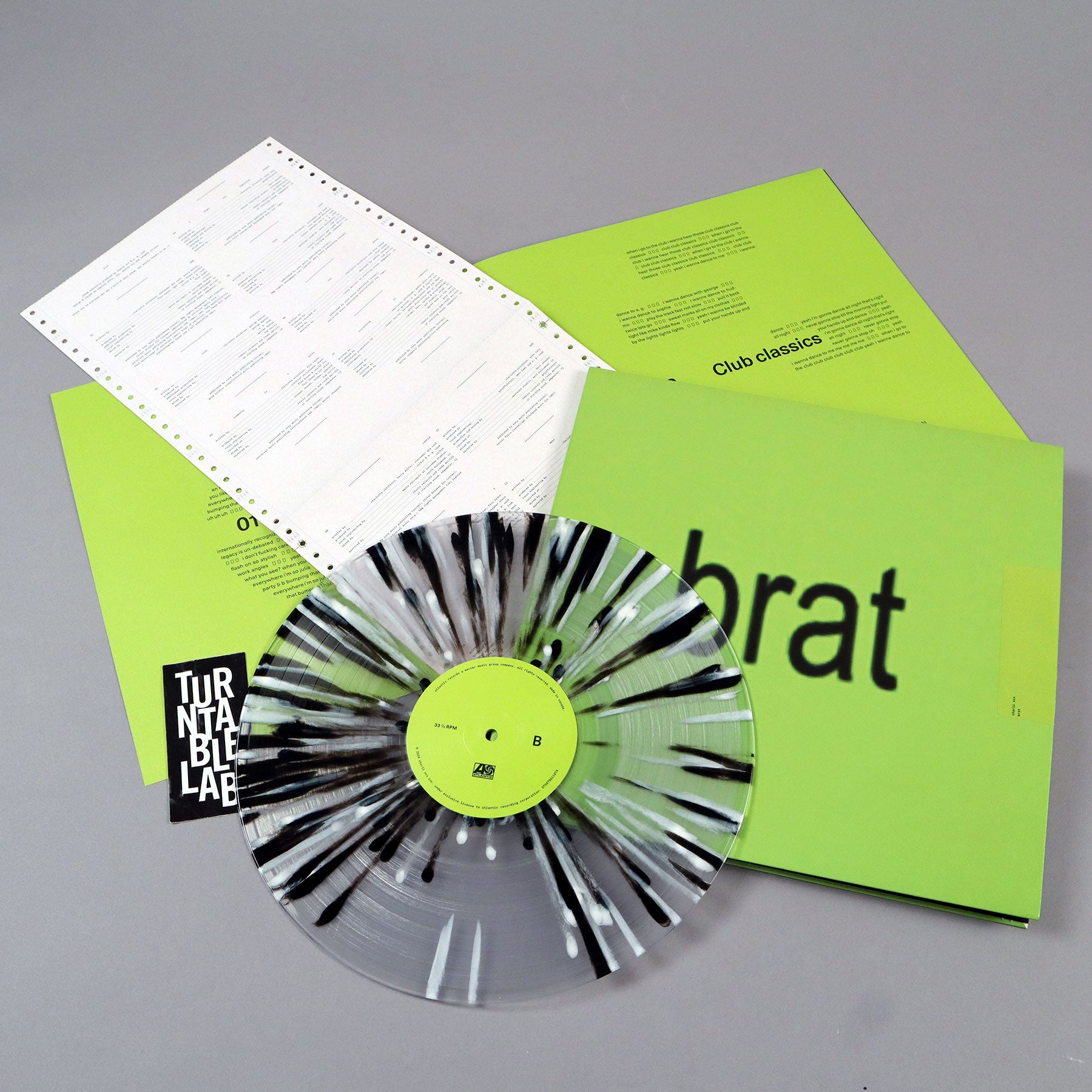 "Charli XCX's sixth studio album BRAT is the eagerly awaited follow up to 2022's CRASH, which reached number 1 on the UK's official album chart. Charli worked with the likes of Gesaffelstein, Hudson Mohawke etc. on the music, and BRAT promises to be an exhilarating club record built around high art references and social commentary: a new era both musically and visually." - Atlantic- Turntable Lab exclusive