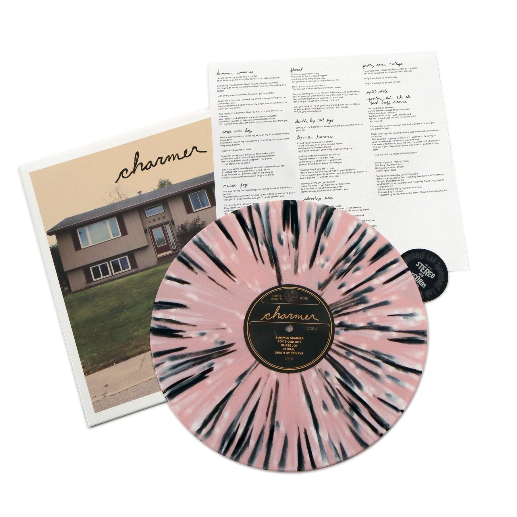 - pink w/ black & white splatter colored vinyl