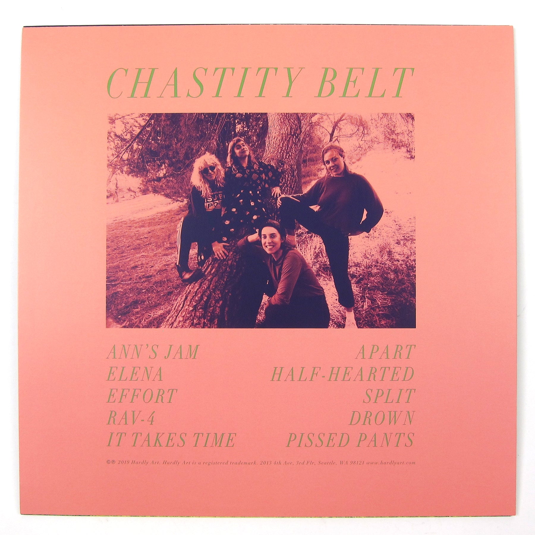Chastity Belt is an indie rock band band formed in Walla Walla, Washington in 2010. A classic four-piece rock ensemble consisting of Julia Shapiro, Lydia Lund, Annie Truscott and Gretchen Grimm, the band traverses the contemporary kaleidoscope of noise, pop, and everything in-between. While their sound has remained consistent across their three prior albums, their 2019 self-titled LP demonstrates the precision that this unit has achieved, crafting songs with a newfound subtlety of instrumental interplay and lyrical content alike. While their sarcastic wit has taken a bit of a backseat, this results in a tone that is less of a shout and more of a conversation. “Ann’s Jam” is bright alt-rock chords and basketball-dribble snares with Shapiro’s voice in the eye of the storm (or should we say sun shower?). “It Takes Time” is a meditative wall of sound, a deft use of volume, distortion, and guitar interplay giving a sorta Marquee Moon vibe. “Split” is acoustic grit and growl, twangy acoustic guitar grounding eerie synths and falsetto vocals. This album is pressed on transparent green vinyl, and includes a printed inner with full album lyrics.