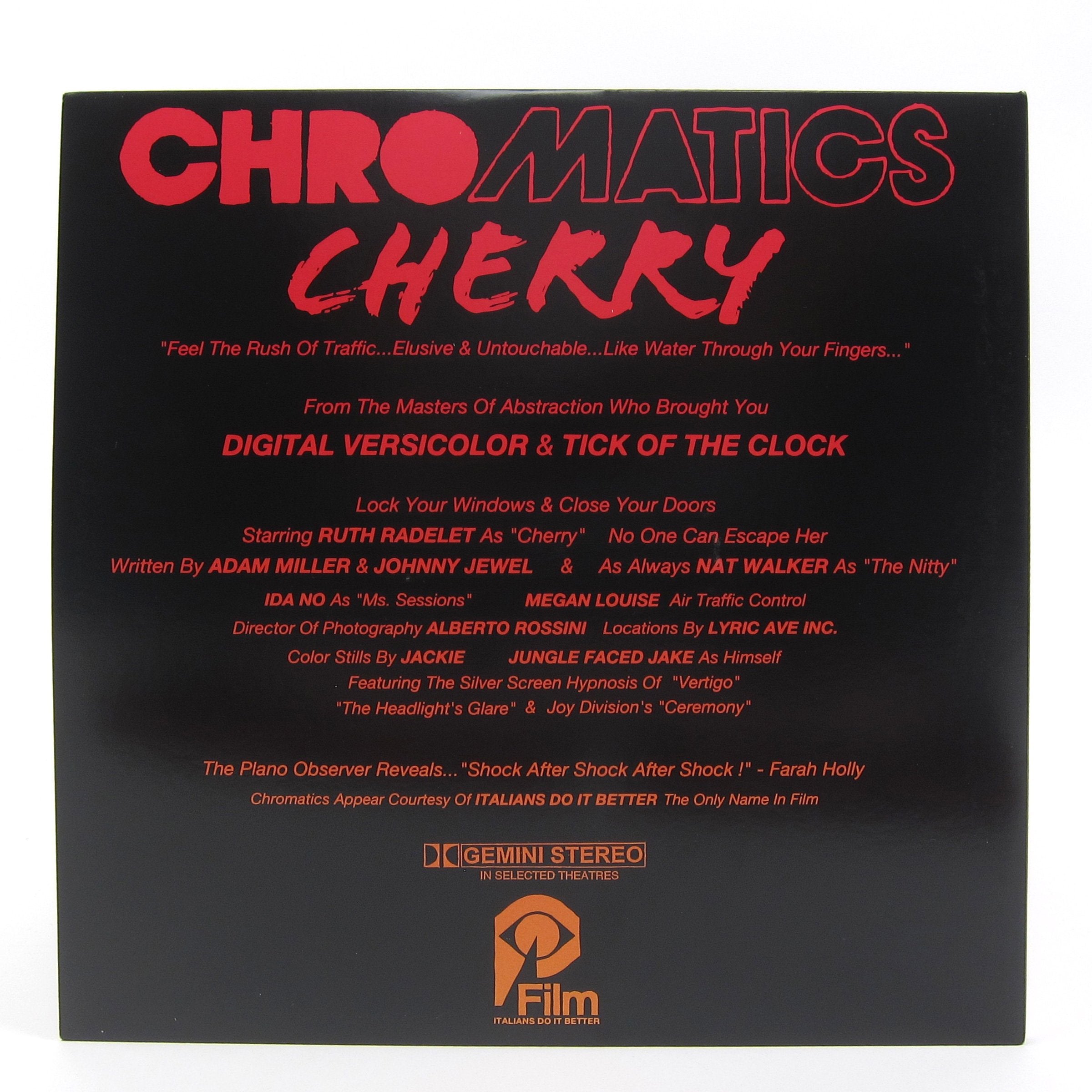 WHILE WE'RE STILL WAITING FOR DEAR TOMMY WE'VE GOT CHERRY TO KEEP US WARM. One day it will come, Chromatics' follow up to 2012's Kill For Love, but I don't think I can hold my breath any longer. Cherry gives us the title track along with a few reinterpretations of cuts from Kill For Love and some previously unreleased material. The music is moody and dark, channeling Italo disco and late night drives into nothingness. Everything is smoothed over with an everlasting, back-lit glow. They even figure out how to release the tension from Joy Division's "Ceremony." This is the deluxe 180 gram edition on cherry red colored vinyl, and includes previously unreleased bonus tracks.