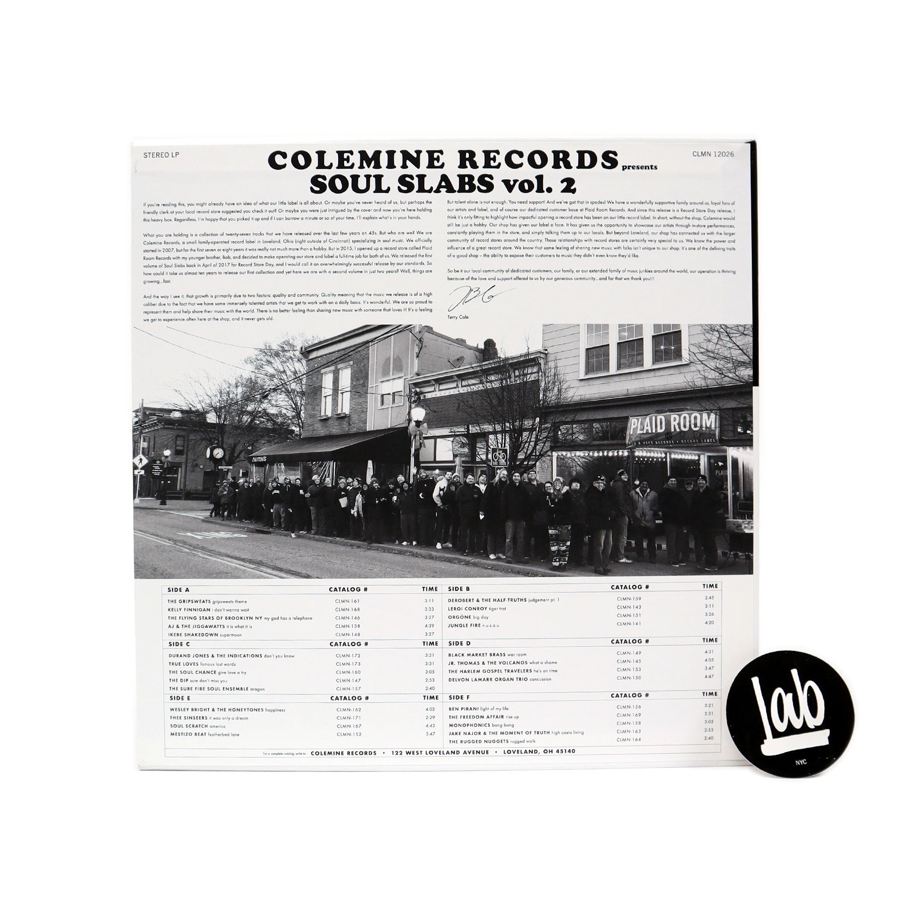 "Soul Slabs Vol. 2 is a collection of A-sides from the 7-inch catalog of Loveland Ohio's Colemine Records. Specializing in heavy soul, funk, and R&B, Colemine prides itself on authenticity and an old school production style, while still making songs that seem fresh and are moving the genre of soul forward. This 3LP collection of 27 tracks puts their diverse catalog on full display, many of these songs being presented for the first time on an LP. Featuring artists such as Durand Jones & The Indications, Kelly Finnigan, Ben Pirani, Jr. Thomas & The Volcanos, Delvon Lamarr Organ Trio, Monophonics, Ikebe Shakedown, The Dip, The Sure Fire Soul Ensemble, Soul Scratch, and more!" - Colemine Records