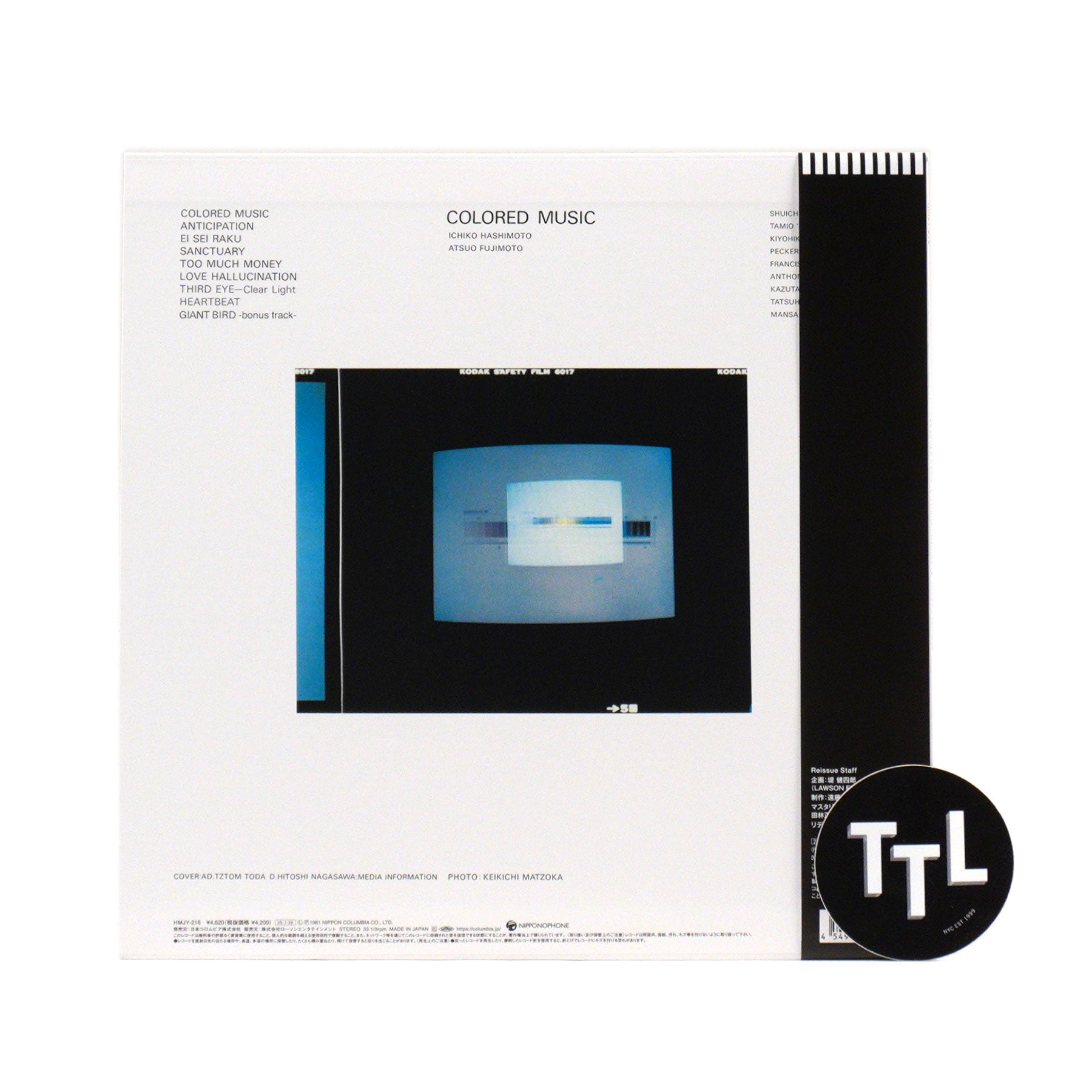 Formed by Ichiko Hashimoto and Atsuo Fujimoto shortly after their previous band toured with YMO, Colored Music released this self-titled album in 1981 before going on hiatus for 36 years. Hashimoto and Fujimoto are the principle songwriters and musicians, but Colored Music features an array of session players; notably the alluring percussionist Pecker (to what degree, we’re not exactly sure) and Prism drummer Mansaku Kimura. Much of the album features Kimura’s drumming on top of the 808 and various other drum machines, creating a unique rhythmic palette inspired by the combined man & machine grooves heard on Sly Stone’s Fresh album. The top line consists of Hashimoto and Fujimoto taking turns on vocals over deep funk-inspired basslines and an omnipresent layer of celestial pads courtesy of the Roland Jupiter 4. Inspired by Roxy Music, Miles Davis, Brian Eno and Bowie’s Berlin Trilogy, the album is a colorful mix of adventurous improvisation (“Third Eye / Clear Light”), jazz-funk greatness (“Love Hallucination”), jagged post-punk guitar shrieks dressed up in rapid-fire 808 beats (“Ei Sei Raku”) and even proto-house music (“Heartbeat”). They veer from Kate Bush-inspired balladry (“Sanctuary”) to cocky blues-rock à la ZZ Top (“Too Much Money”) from one track to the next, and the moods swing just as effortlessly within the course of a single song; check out the uptempo avant-funk grooves breaking out into gorgeous piano-led cascade on “Anticipation.” 2025 Japan import pressing with previously CD-only bonus track "Giant Bird," recommended.