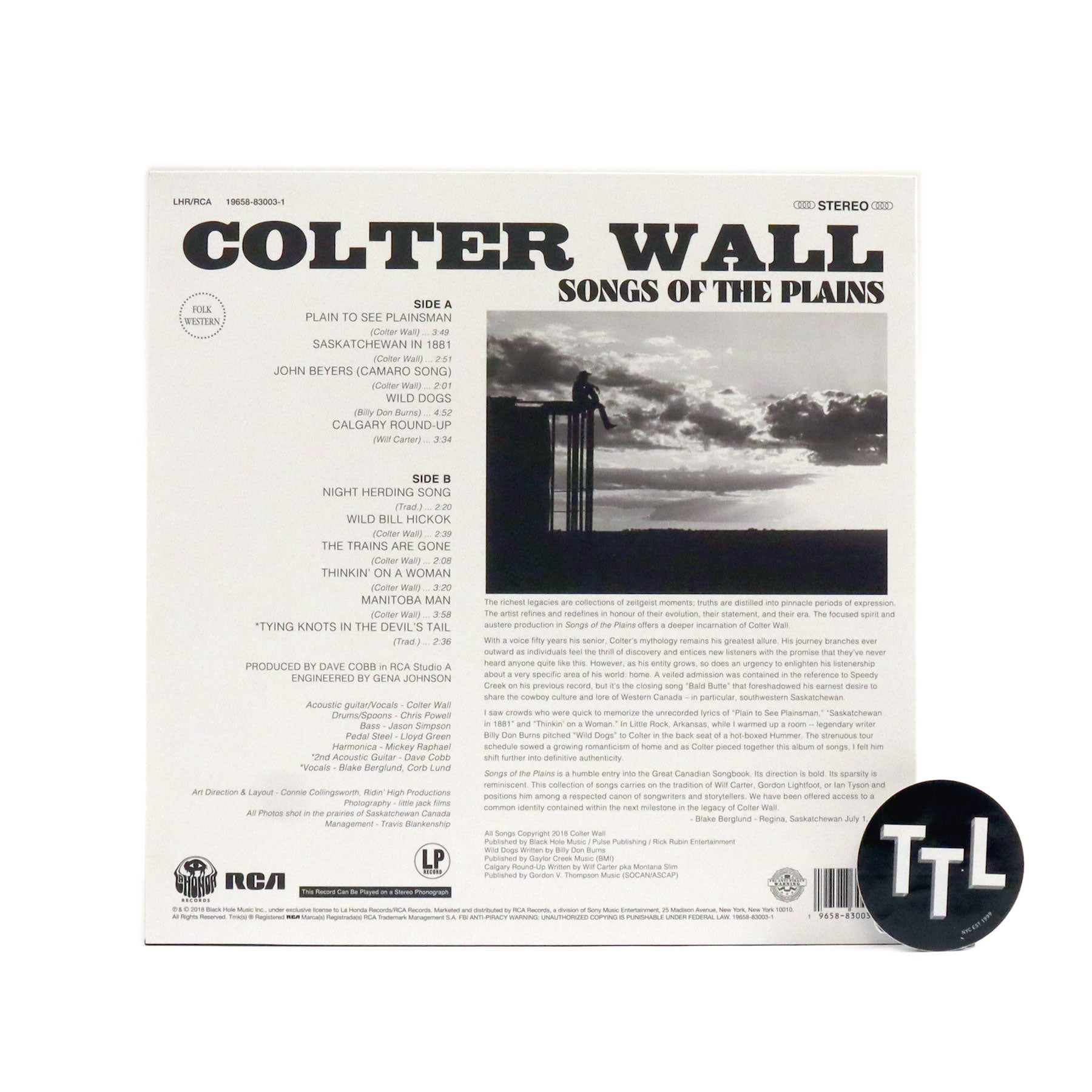 "After two years of relentless touring, Colter Wall wanted to make an album about home. Drawing on the stories of Saskatchewan, Canada, the young songwriter's corner of the world takes shape throughout his second full-length album, Songs of the Plains. Produced by Dave Cobb in Nashville's Studio A, the project combines striking original folk songs, well-chosen outside cuts, and a couple of traditional songs that reflect his roots growing up in the small city of Swift Current." - La Honda Records