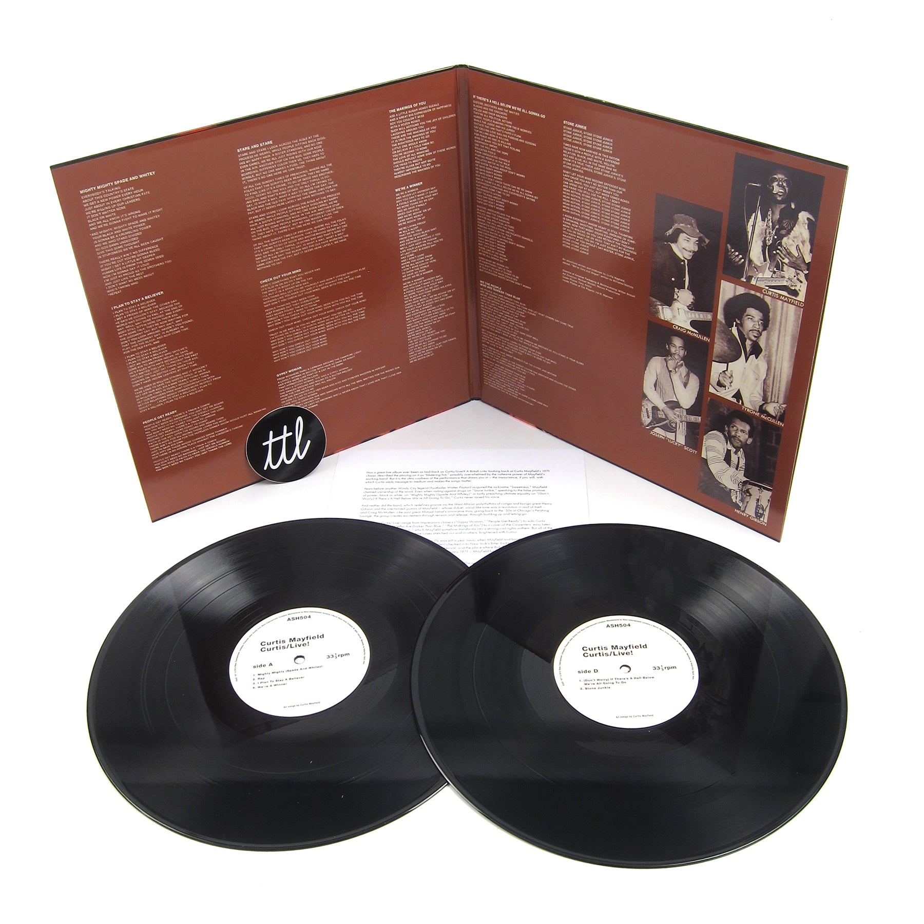 Released in between the Curtis and Roots albums, this features Curtis Mayfield with a tight five piece set live at Manhattan's Bitter End, 1971. I'm gonna get a bit mushy on this one so please excuse me, but that's only because Curtis Live! is flat-out one of the greatest live recordings you can find, for any genre. It's one of those rare pieces that not only spotlights an artist at the top of their game, but gives us their full vision. It's all about the interaction with the crowd. This is the kind of performance where there is such a strong connection between the audience and performers that they're no longer just sitting there listening to music or just up there playing songs - they are talking together and pushing each other to a higher place (feel no pain). This also happens to be one of Curtis' most raw and funky periods, pre-Superfly strings. Check out tracks like "Mighty Mighty, Spade And Whitey," the Souls of Mischief-sampled "We're A Winner," the conga break and crowd participation on "We People Who Are Darker Than Blue" and "Stare and Stare" for the taste. Also includes classics like "If There's A Hell Below," "People Get Ready," "Stone Junkie" and more. 2LP, gatefold with insert. Recommended.