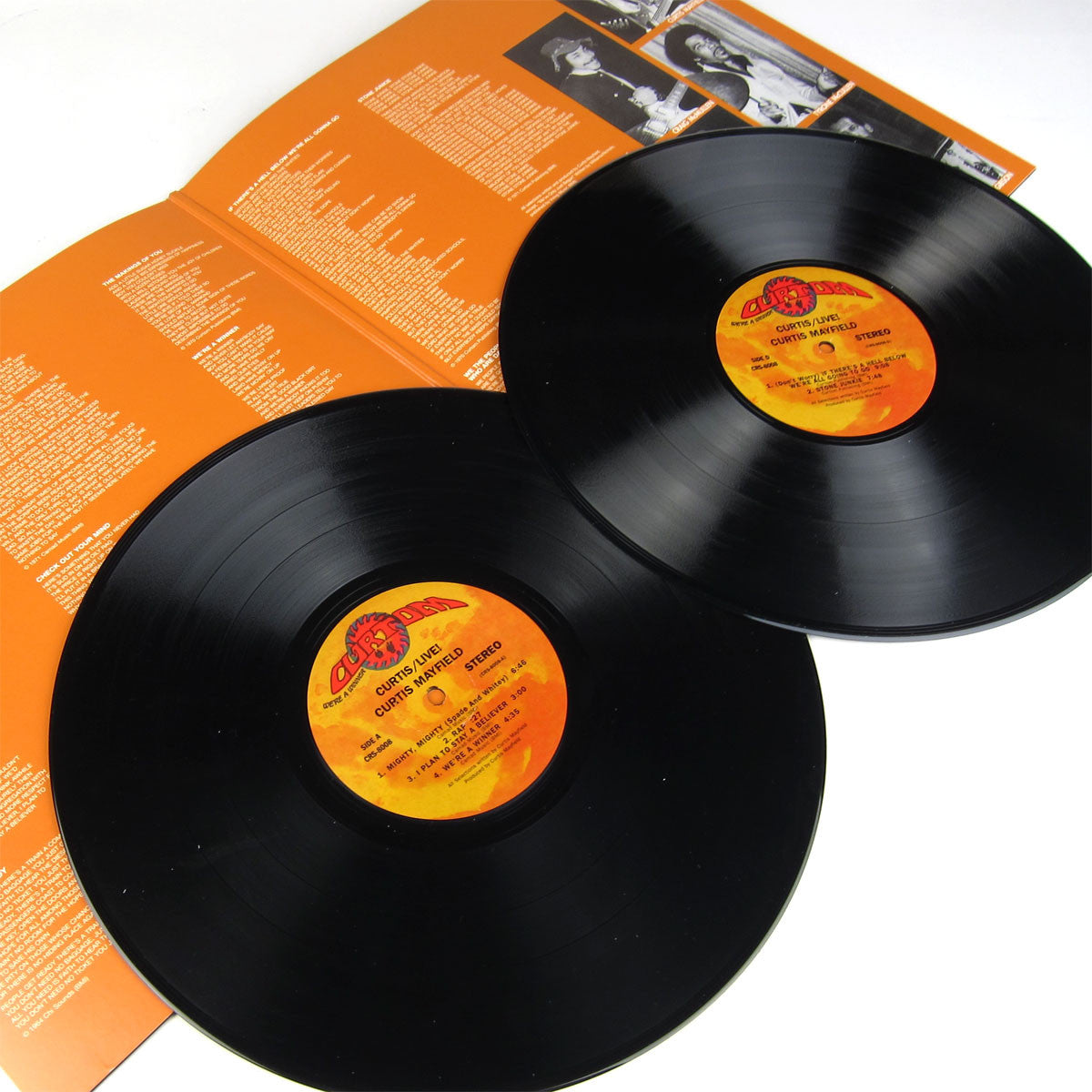 Released in between the Curtis and Roots albums, this features Curtis Mayfield with a tight five piece set live at Manhattan's Bitter End, 1971. I'm gonna get a bit mushy on this one so please excuse me, but that's only because Curtis / Live! is flat-out one of the greatest live recordings you can find, for any genre. It's one of those rare pieces that not only spotlights an artist at the top of their game, but gives us their full vision. It's all about the interaction with the audience. This is the kind of performance where there is such a strong connection between the audience and performers that they're no longer just sitting there listening to music or just up there playing songs - they are talking together and pushing each other to a higher place (feel no pain). This also happens to be one of Curtis' most raw and funky periods, pre-Superfly strings. Check out tracks like "Mighty Mighty, Spade And Whitey," the Souls of Mischief sampled "We're A Winner," the conga break and crowd participation on "We People Who Are Darker Than Blue" and "Stare and Stare" for the taste. Also includes classics like "If There's A Hell Below," "People Get Ready," "Stone Junkie" and more. 2LP, gatefold. Recommended.
