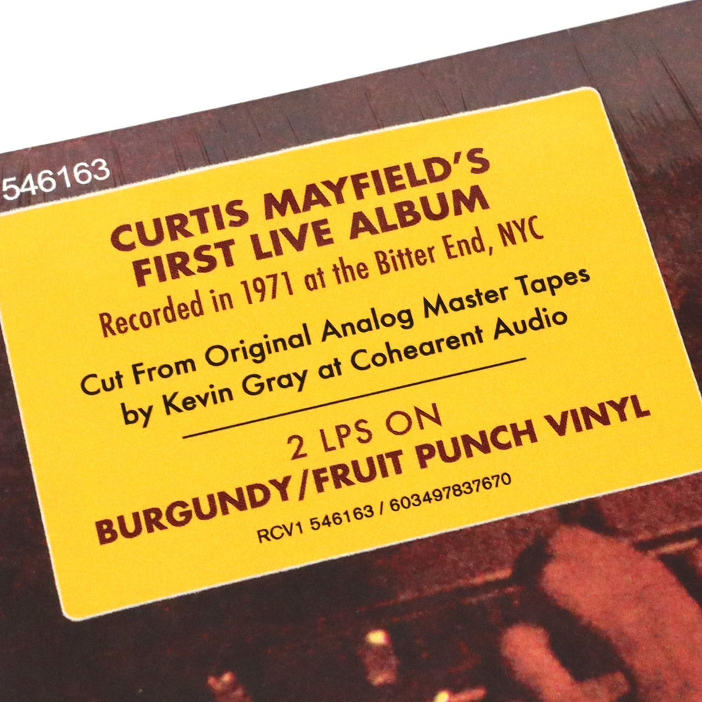 Released in between the Curtis and Roots albums, this features Curtis Mayfield with a tight five piece set live at Manhattan's Bitter End, 1971. I'm gonna get a bit mushy on this one so please excuse me, but that's only because Curtis Live! is flat-out one of the greatest live recordings you can find, for any genre. It's one of those rare pieces that not only spotlights an artist at the top of their game, but gives us their full vision. It's all about the interaction with the crowd. This is the kind of performance where there is such a strong connection between the audience and performers that they're no longer just sitting there listening to music or just up there playing songs - they are talking together and pushing each other to a higher place (feel no pain). This also happens to be one of Curtis' most raw and funky periods, pre-Superfly strings. Check out tracks like "Mighty Mighty, Spade And Whitey," the Souls of Mischief-sampled "We're A Winner," the conga break and crowd participation on "We People Who Are Darker Than Blue" and "Stare and Stare" for the taste. Also includes classics like "If There's A Hell Below," "People Get Ready," "Stone Junkie" and more. 2LP, gatefold with insert. Recommended.